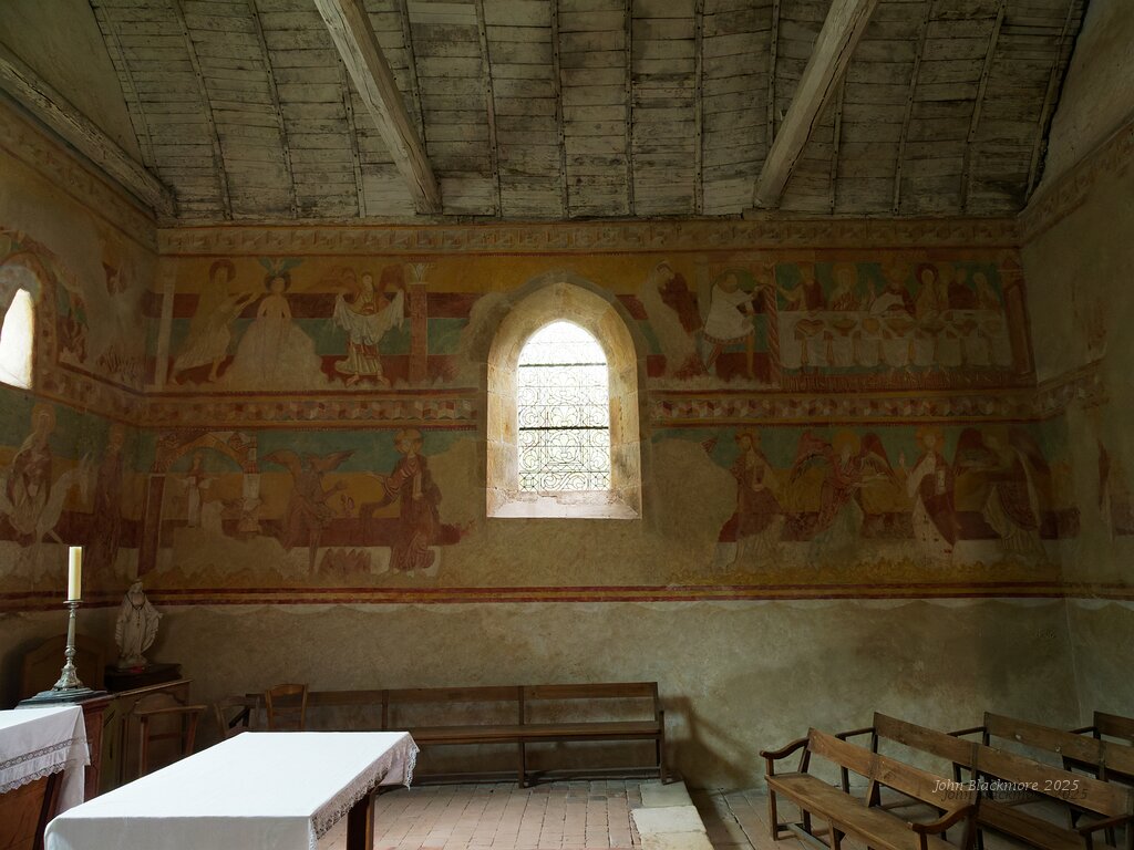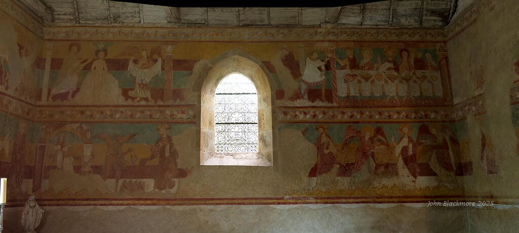 south wall top: marriage of Cana; bottom: angels wait on Jesus
