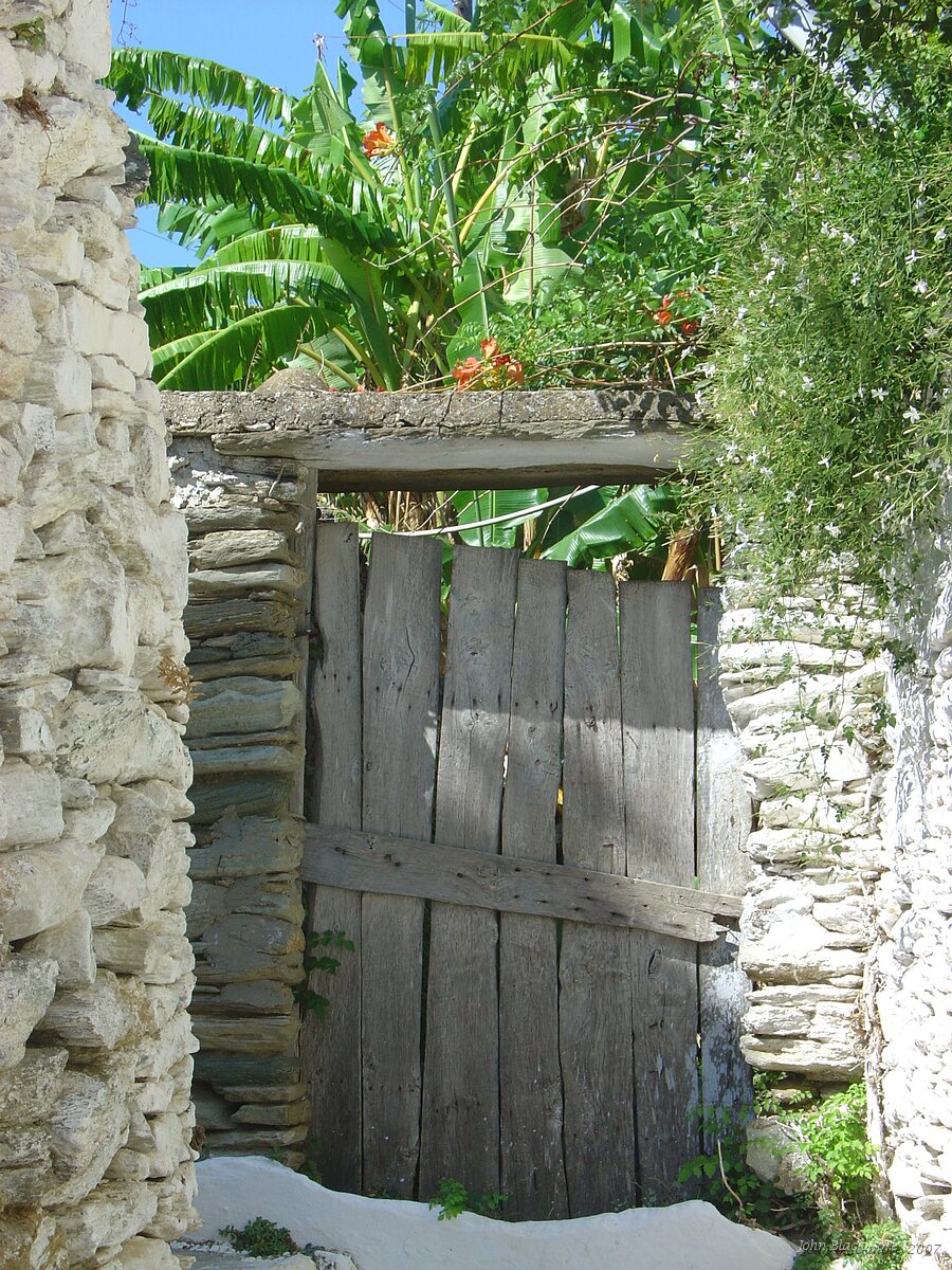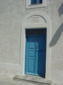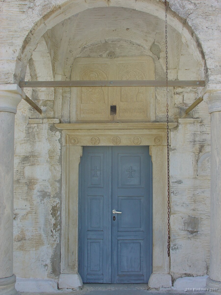 17 Andros, Greece, Panakhrandou, door, monastery, ship image