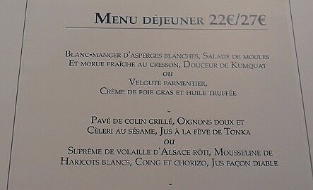 starter: Blanc-manger d'asperges blanches, Salade de moules et morue fraîche au Cresson, Douceur de Kumquat