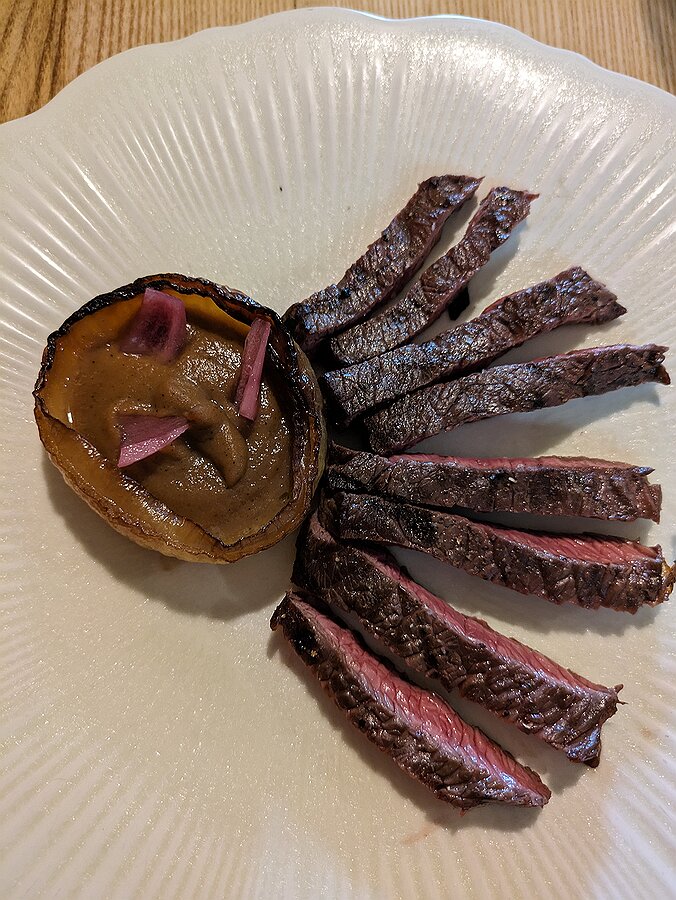 ceviche de loup de mer (sea bass), champignons à la Grecque, citron