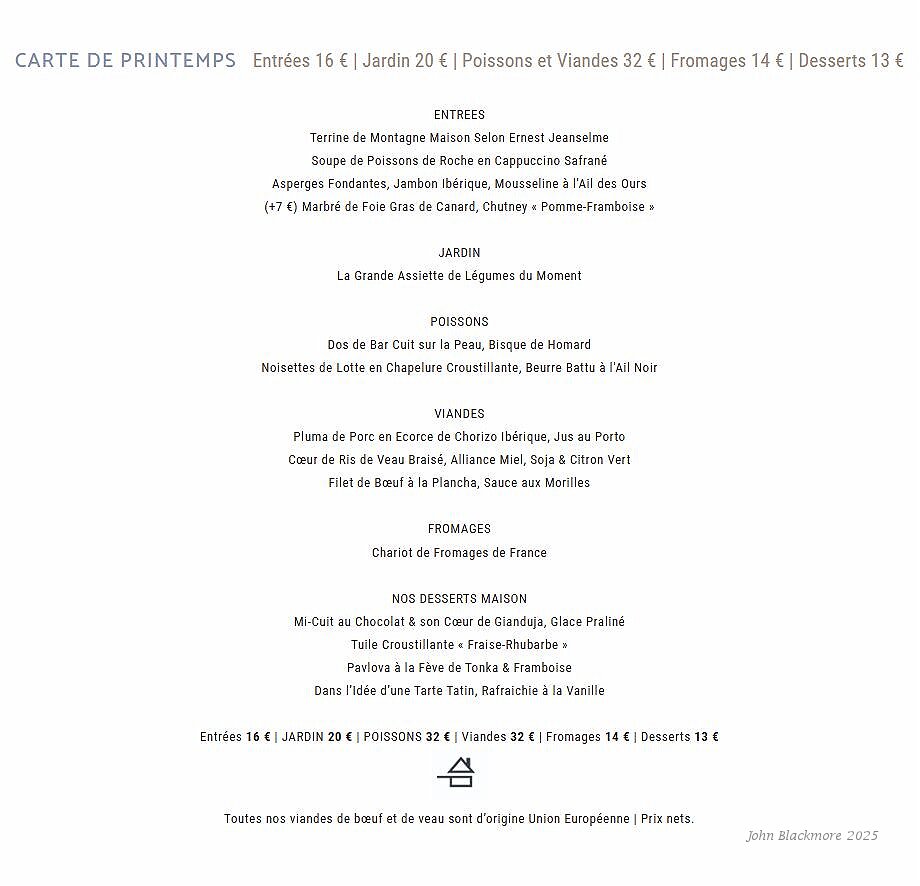 A vous de composer votre menu dans la carte. 1 Mise en Bouche, 1 Entrée, 1 Poisson ou 1 Viande, Fromage et 1 Dessert