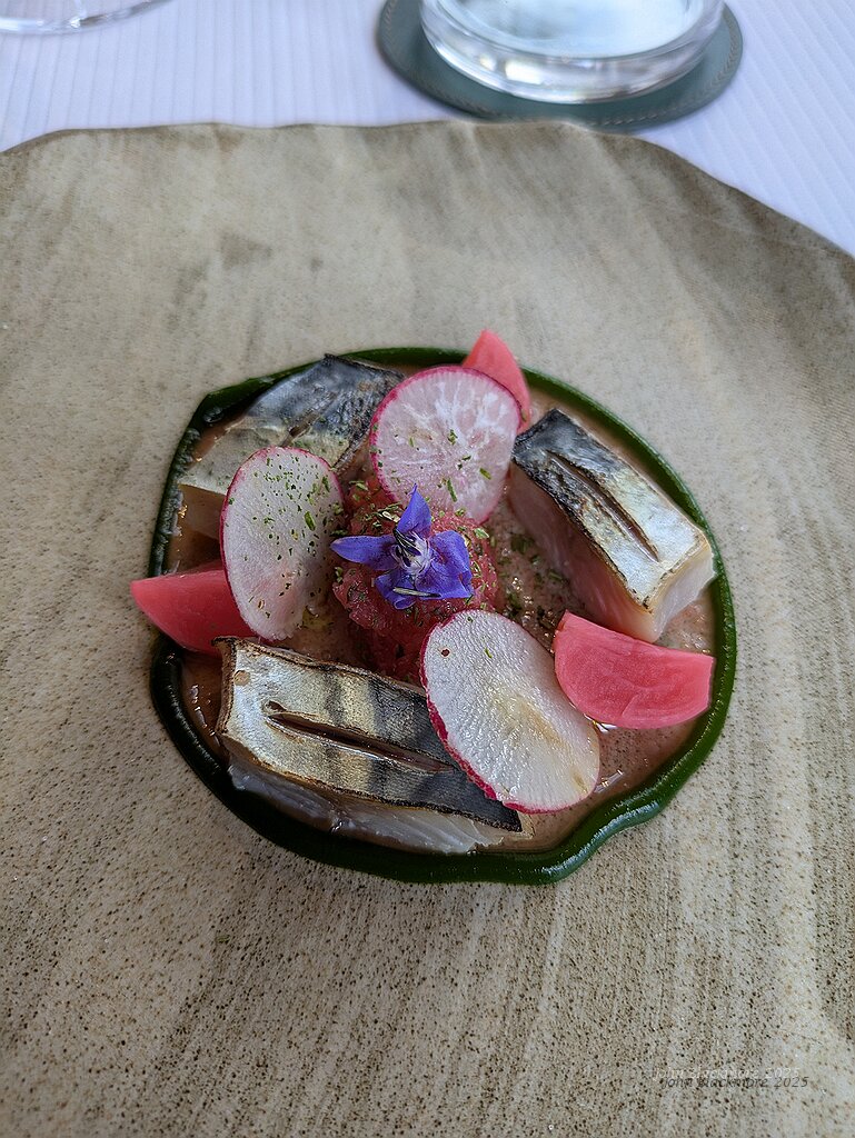 Maquereau a la flamme, déclinaison de radis et gaspacho