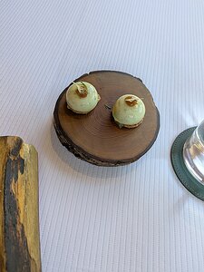 peas with pea sorbet, jelly, mouse, muscadet and anise