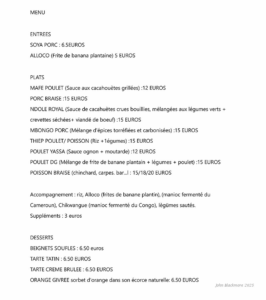 MAFE POULET (Sauce aux cacahouètes grillées) : 12 EUROS