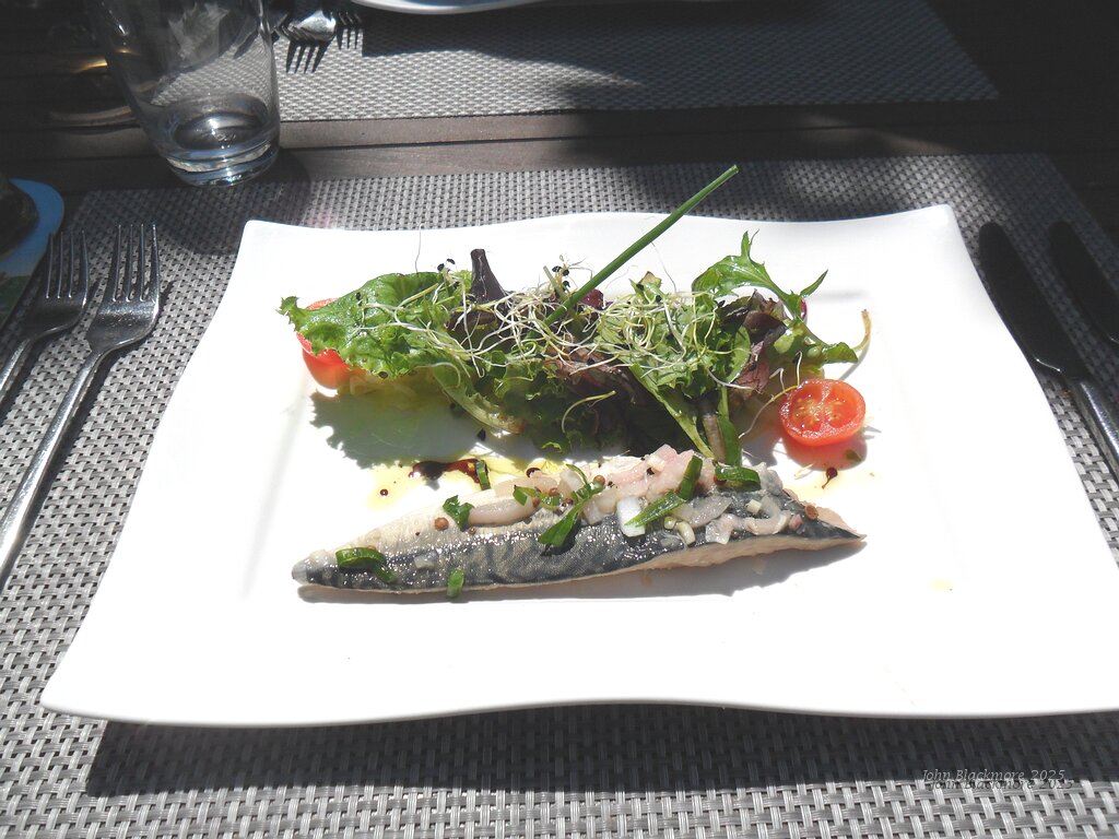 30€ menu starter -Filet de Maqueraux à l'escabèche, Salade de fenouìl mariner à l'huile d'olive