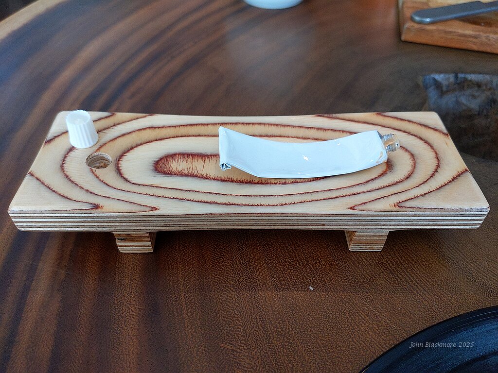 amuse bouche: miso bread with tube of tuna fish paste