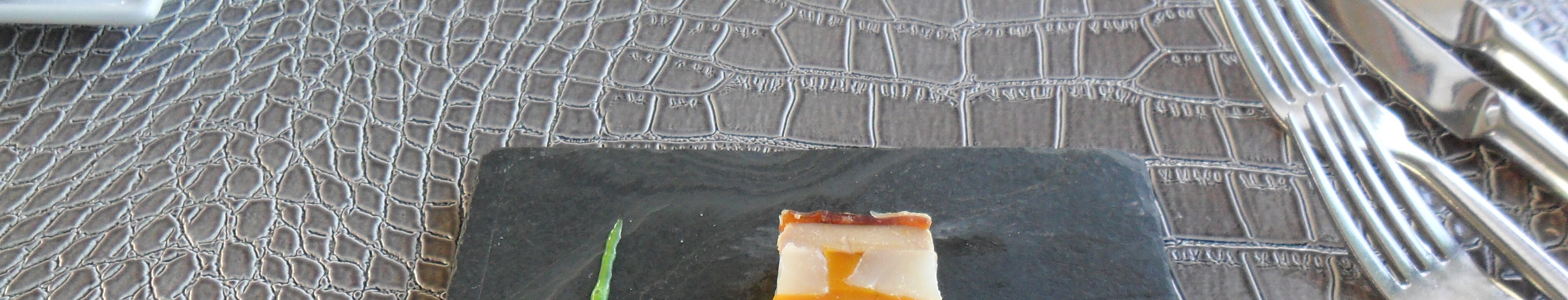 starter: Pressé de poulet jaune, Cécina et foie gras, une salade de choucroute grillée et coriandre