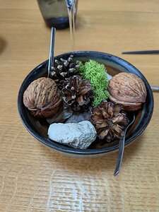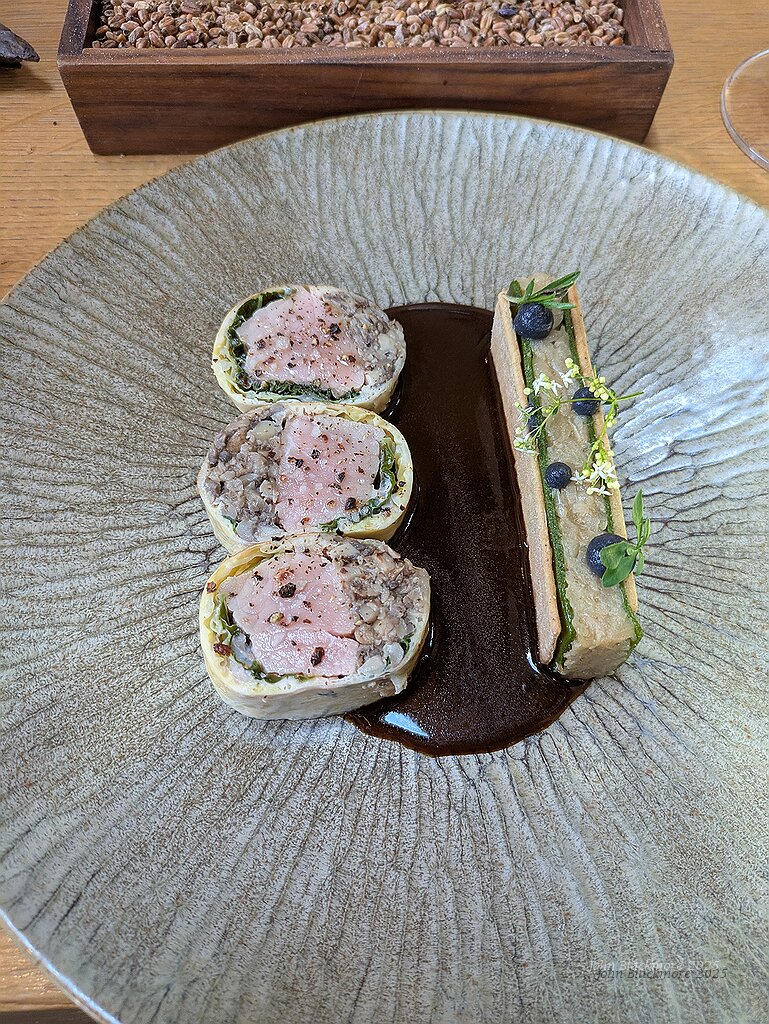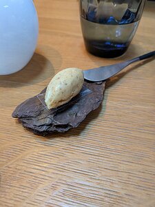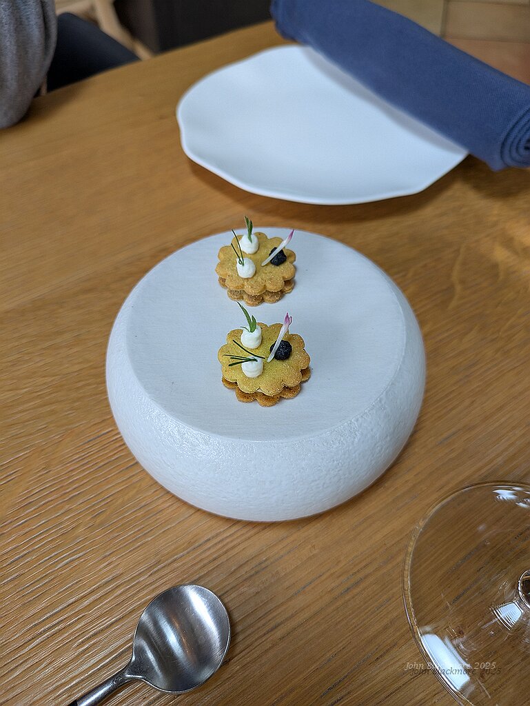 amuse bouche: Balade entre forêt et jardin - herb, egg yolk, pickled vegetables, curry spice
