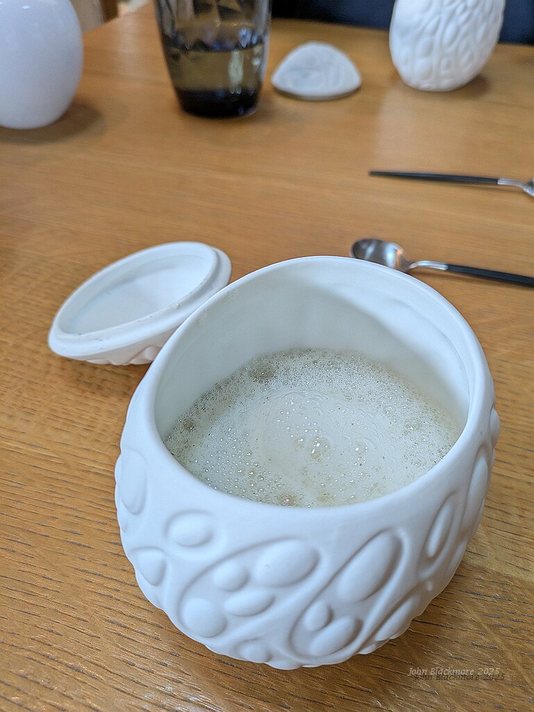 L'asperge Cappuccino / Ail sauvage / Lait fumé / biscuit top