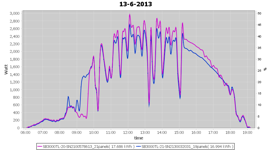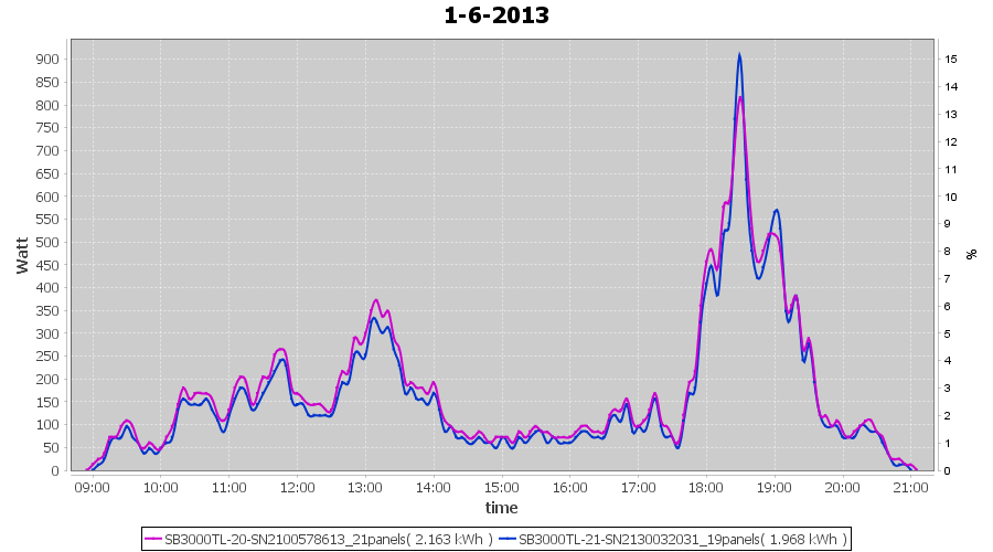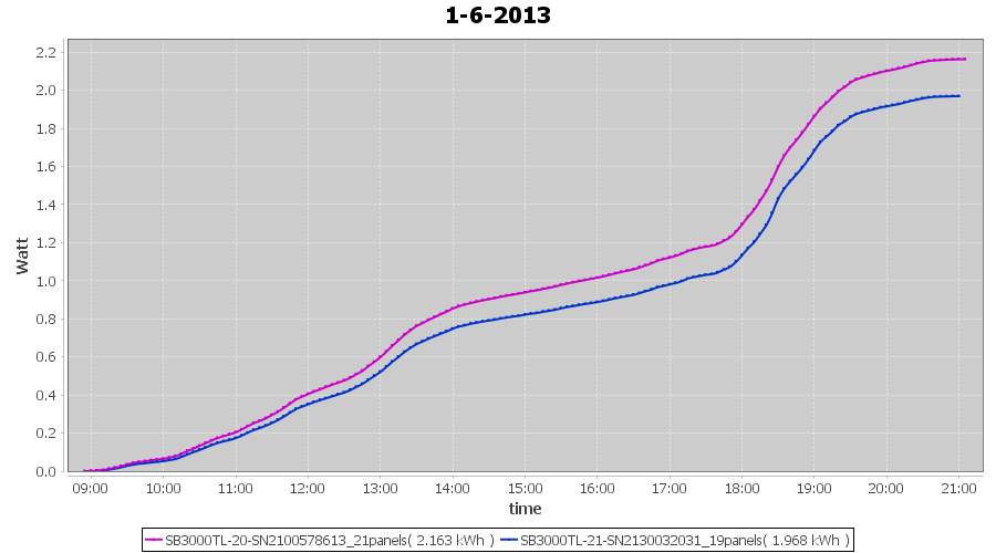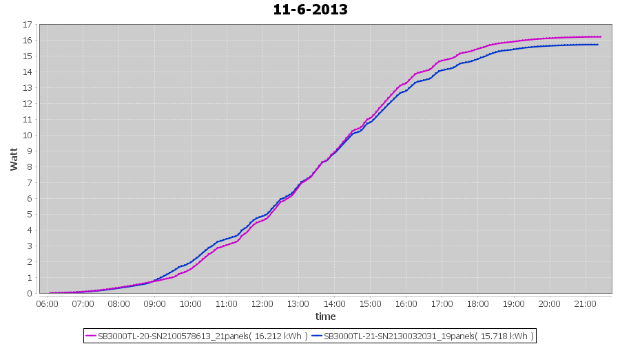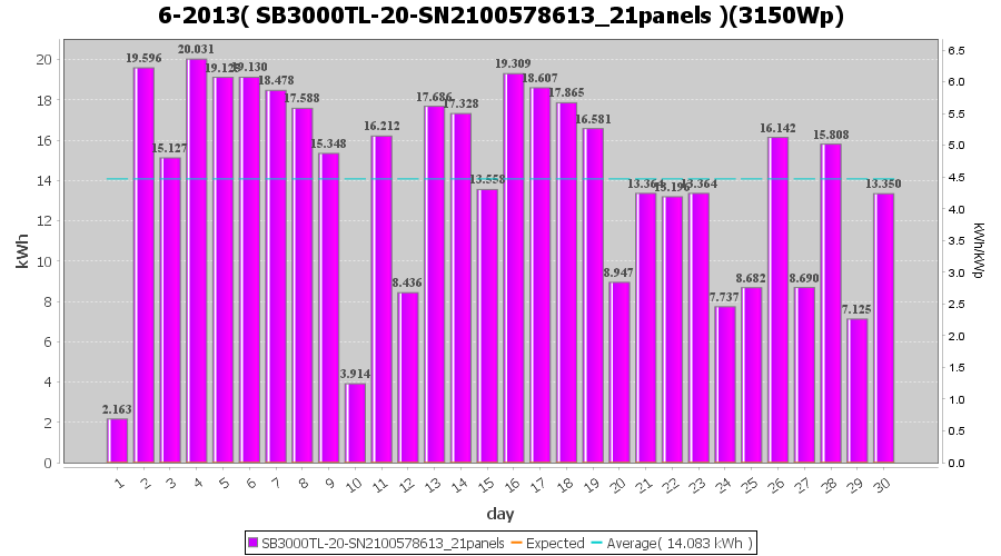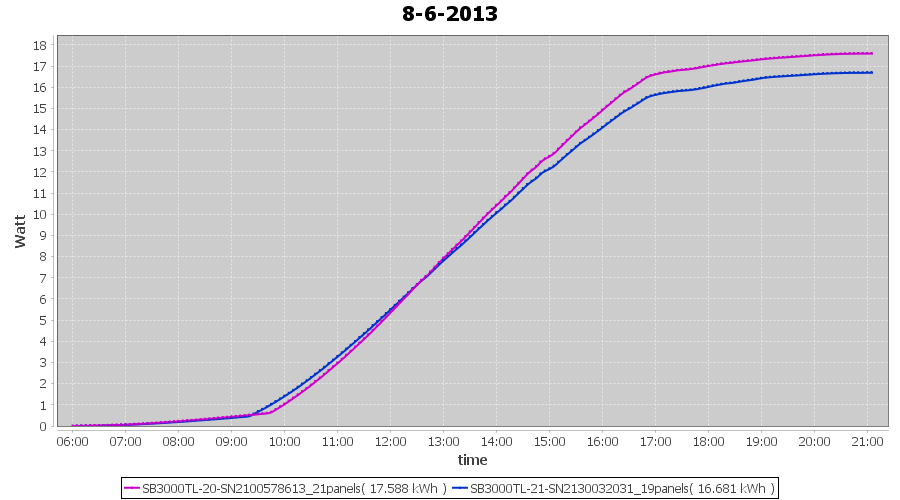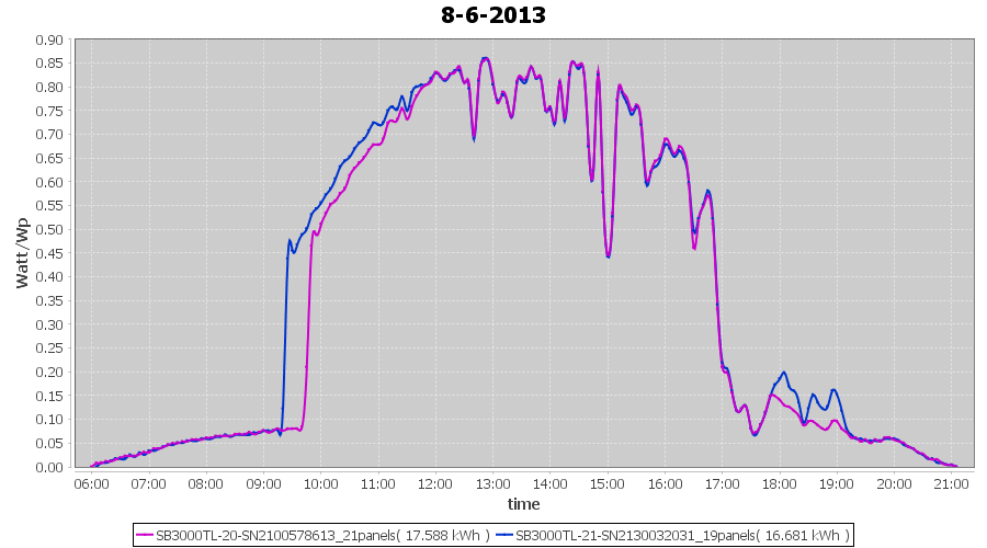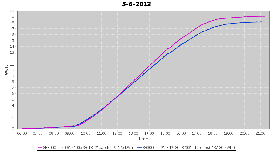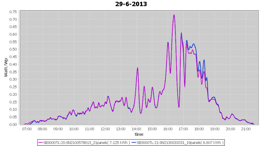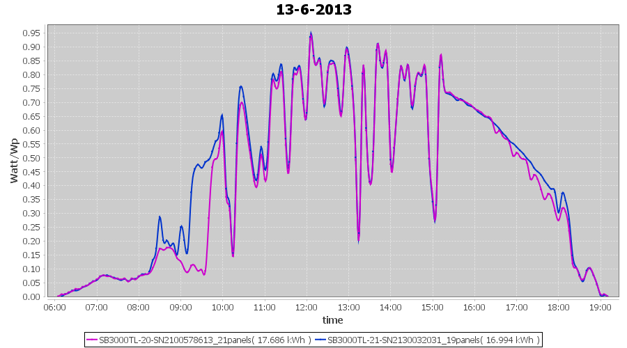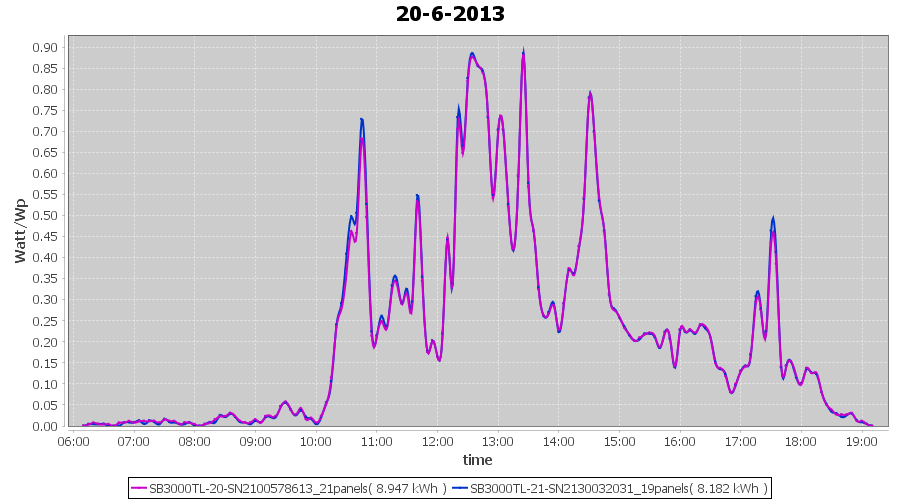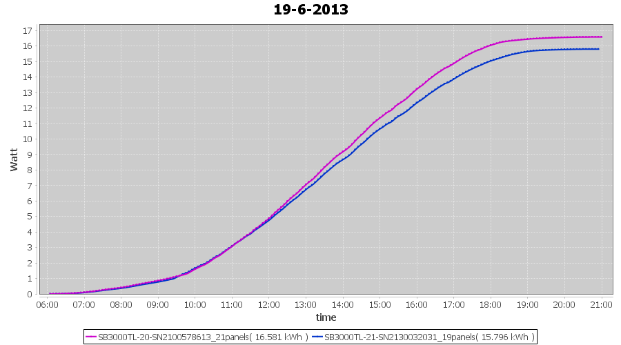 | 20-6-2013 | kWh | Sum | W/Wp | 17.129 | 6000 | 2.9 | 7.922 | € 6.06 | 2.1 |