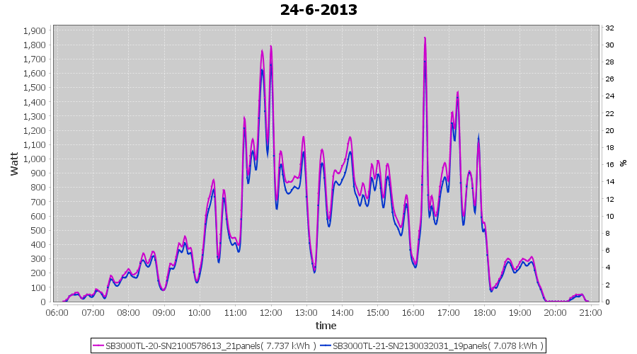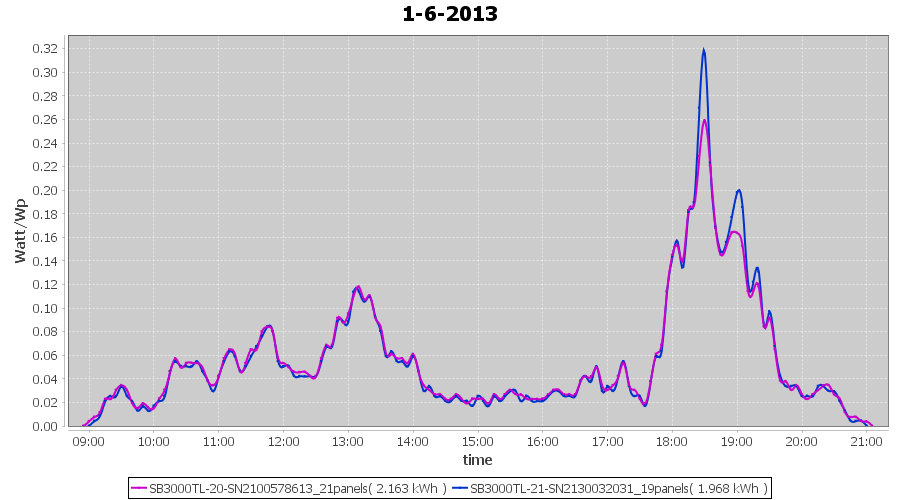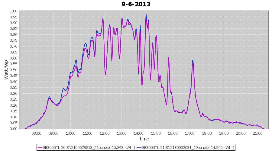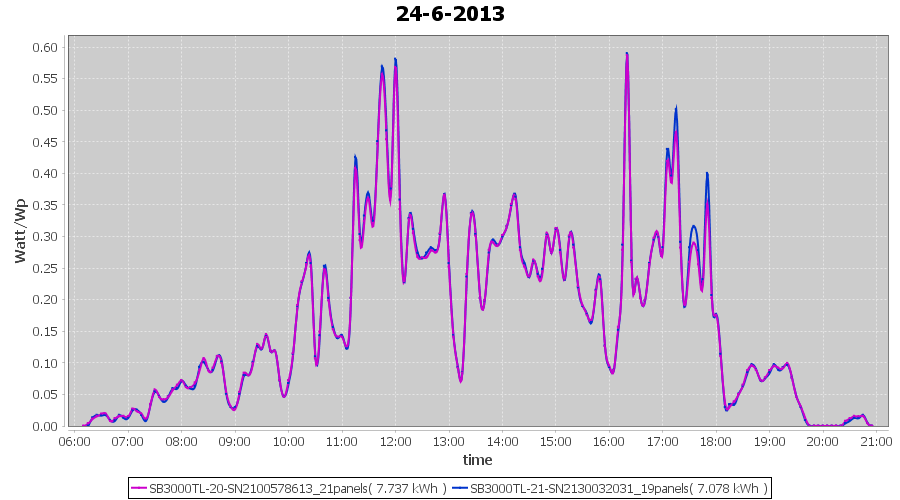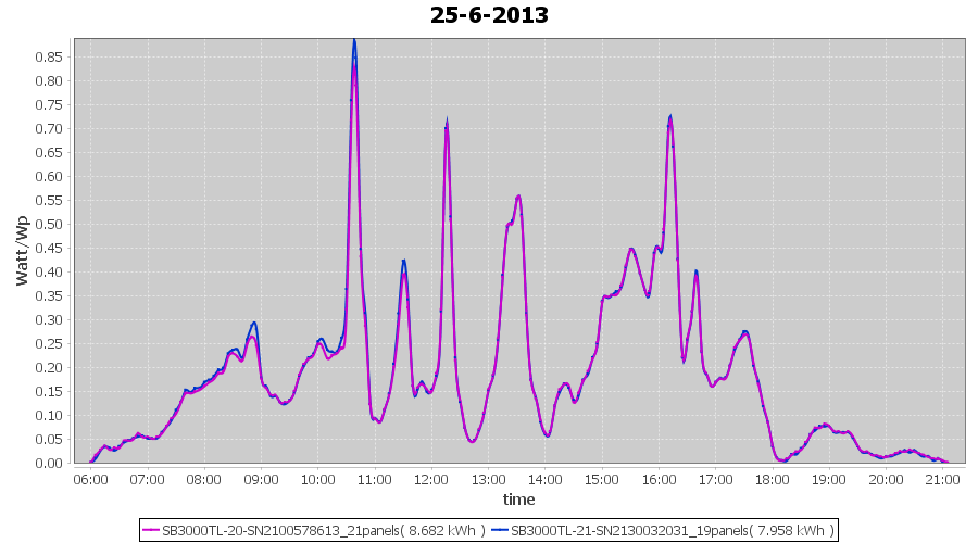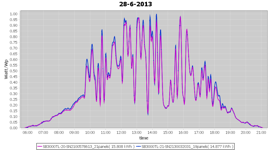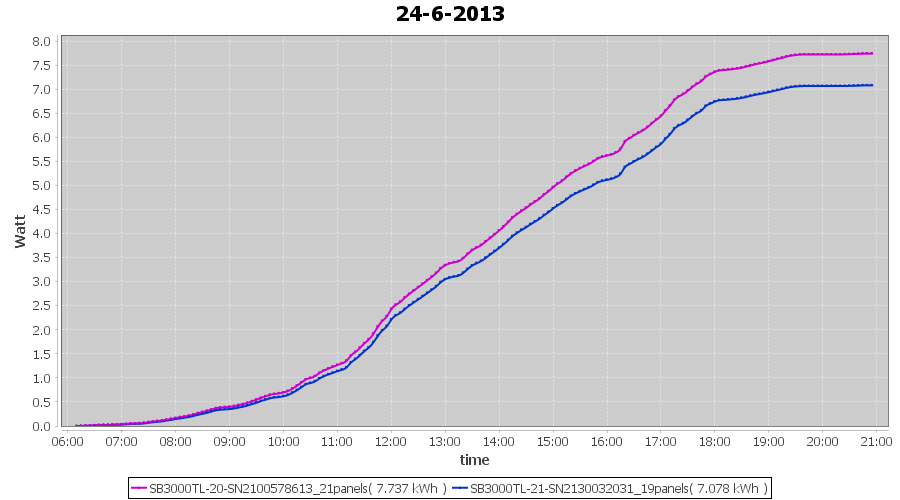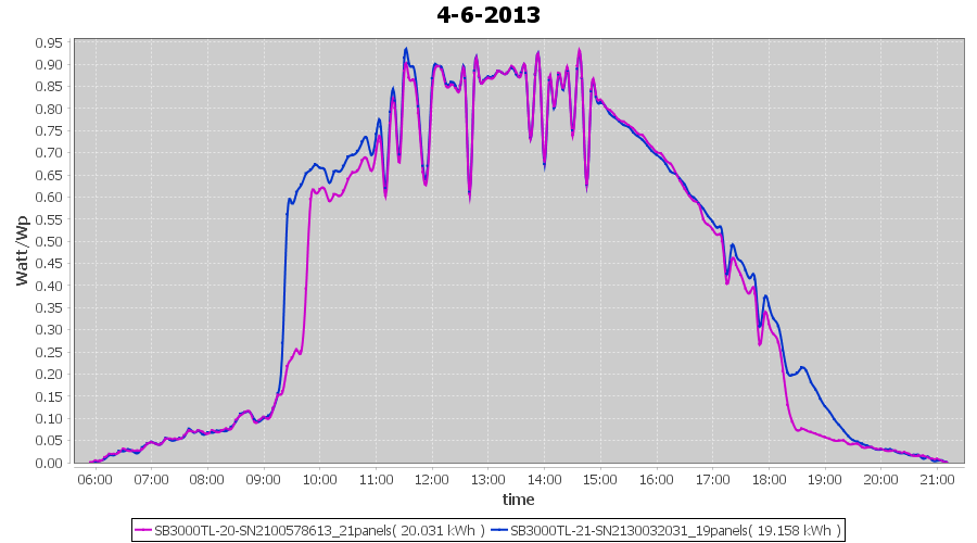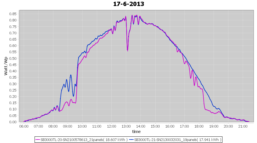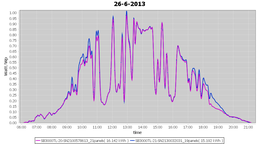 | 21-6-2013 | kWh | Sum | W/Wp | 26.238 | 6000 | 4.4 | 12.135 | € 9.28 | 3.2 |