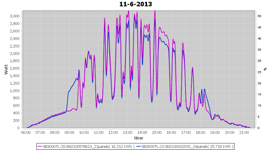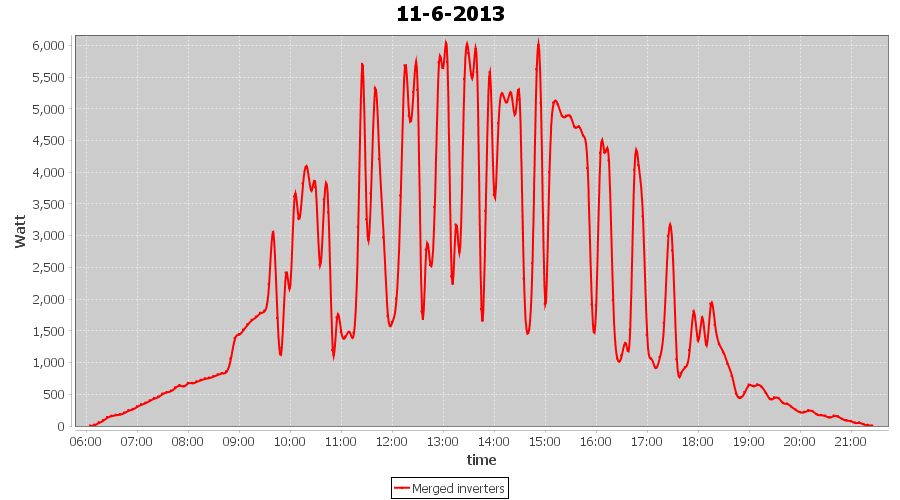 | 11-6-2013 | kWh | Sum | W/Wp | 31.930 | 6000 | 5.3 | 14.768 | € 11.30 | 3.9 |