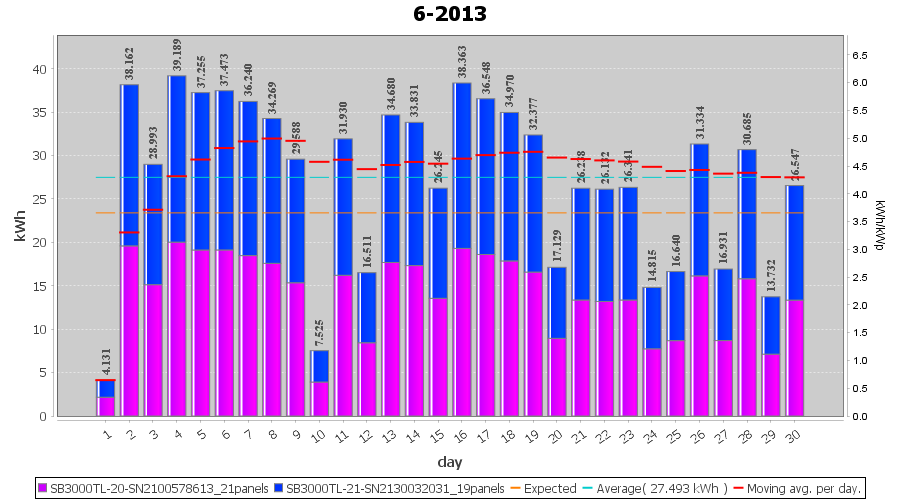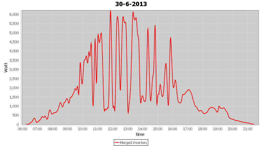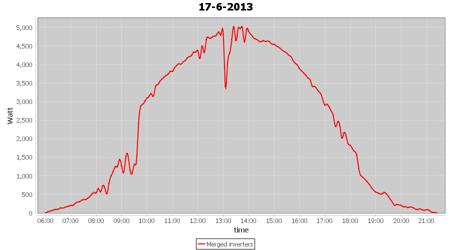 | 17-6-2013 | kWh | Sum | W/Wp | 36.548 | 6000 | 6.1 | 16.903 | € 12.93 | 4.4 |