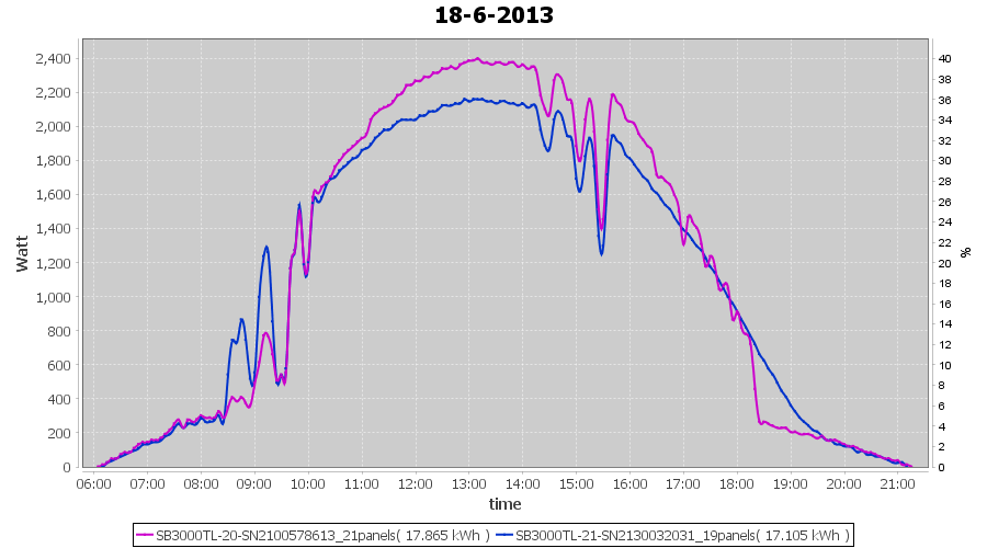 | 18-6-2013 | kWh | Sum | W/Wp | 34.970 | 6000 | 5.8 | 16.174 | € 12.37 | 4.2 |