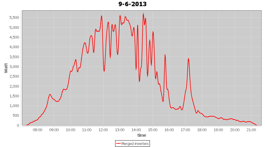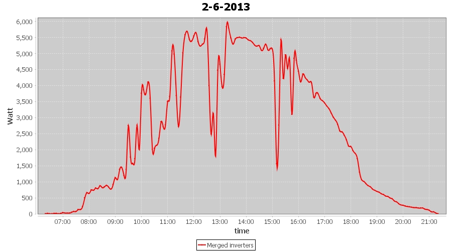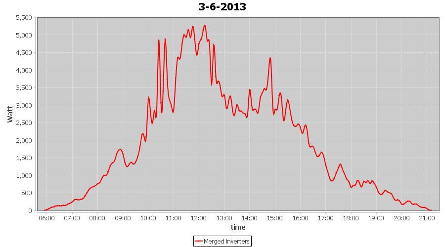 | 5-6-2013 | kWh | Sum | W/Wp | 37.255 | 6000 | 6.2 | 17.230 | € 13.18 | 4.5 |