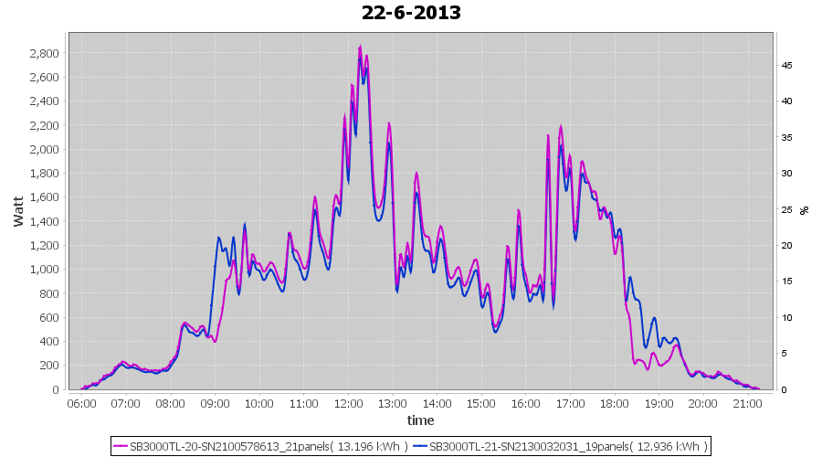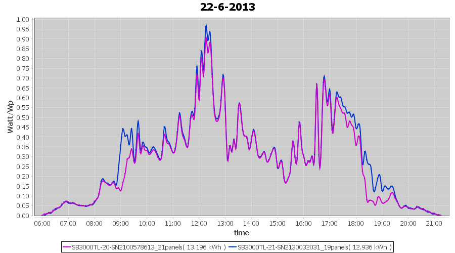 | 22-6-2013 | kWh | Sum | W/Wp | 26.132 | 6000 | 4.4 | 12.086 | € 9.25 | 3.2 |