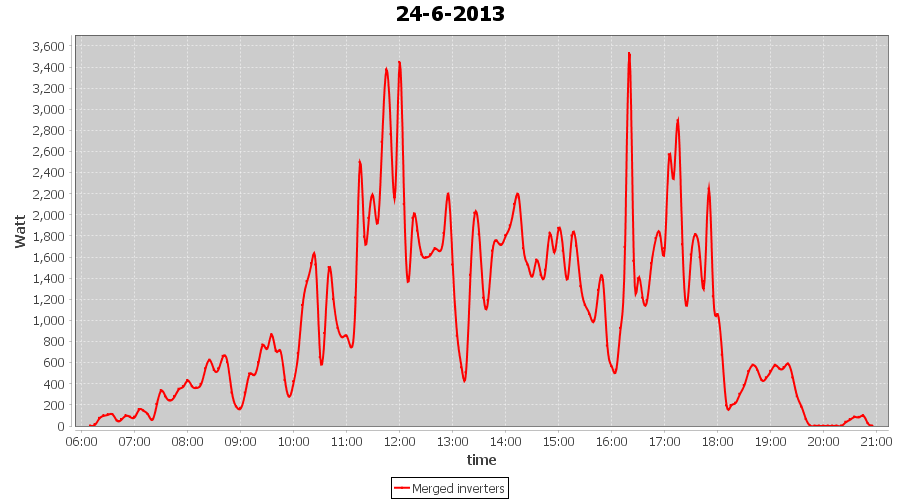 | 16-6-2013 | kWh | Sum | W/Wp | 38.363 | 6000 | 6.4 | 17.743 | € 13.57 | 4.7 |
