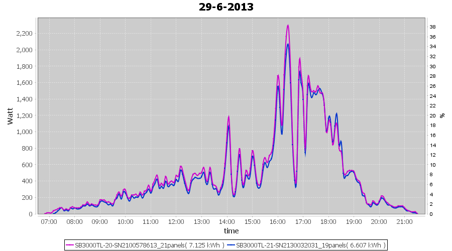 | 29-6-2013 | kWh | Sum | W/Wp | 13.732 | 6000 | 2.3 | 6.351 | € 4.86 | 1.7 |