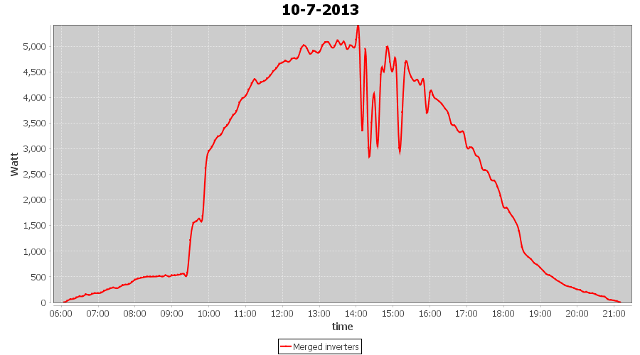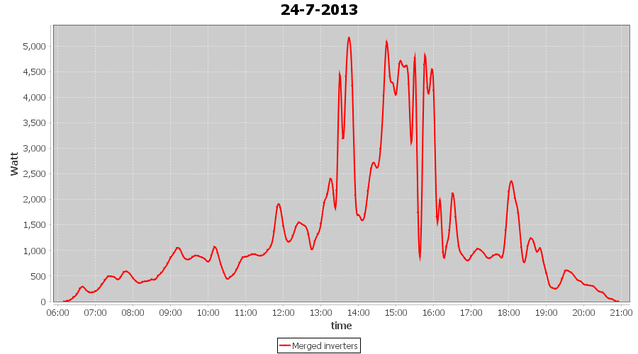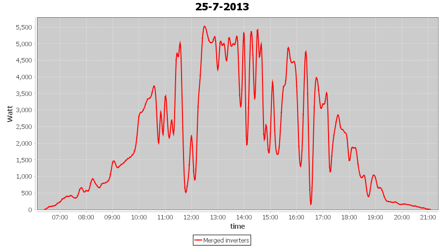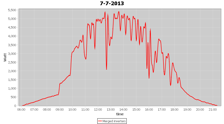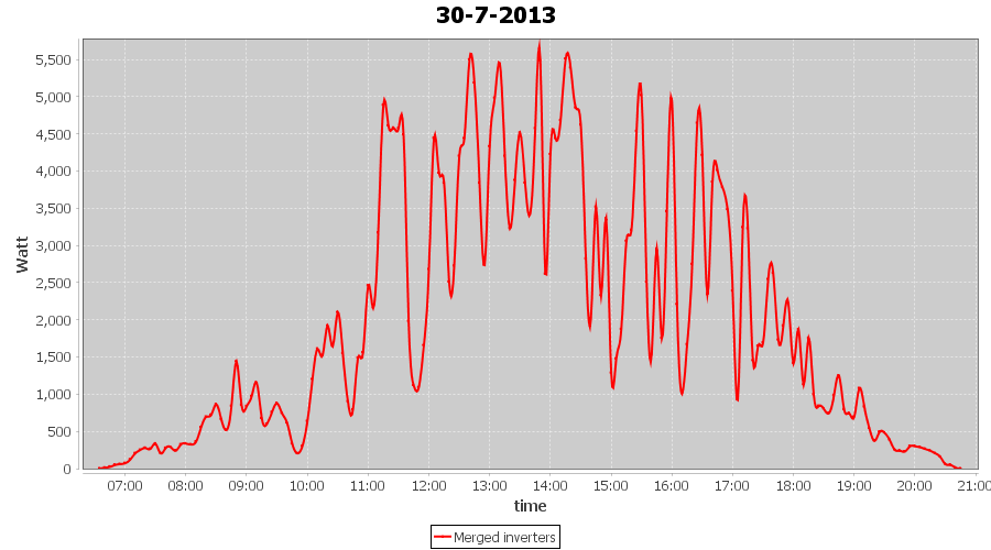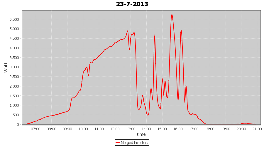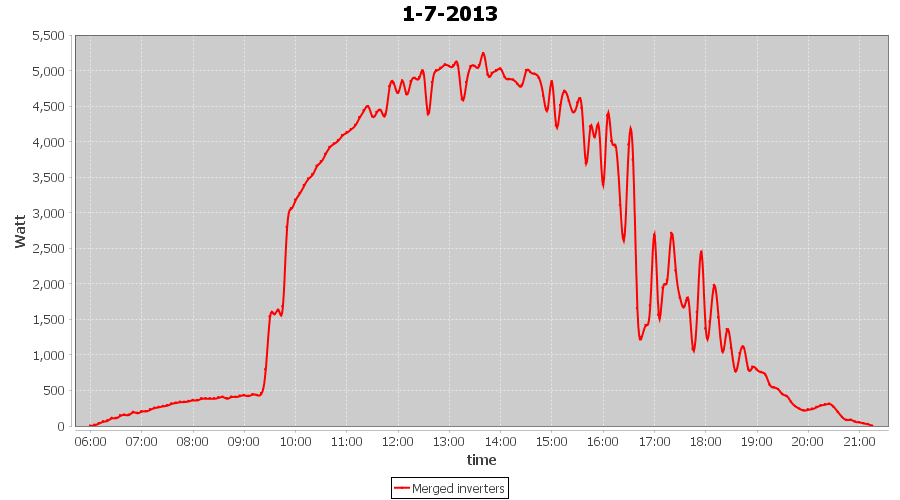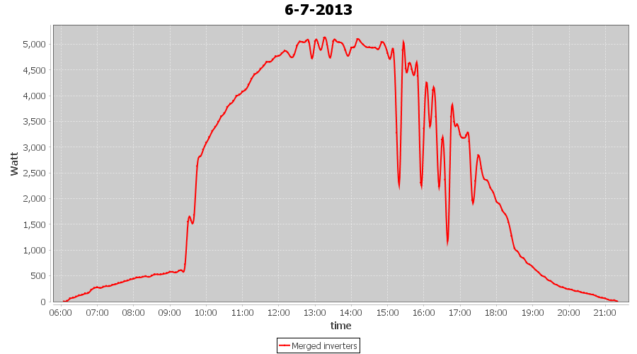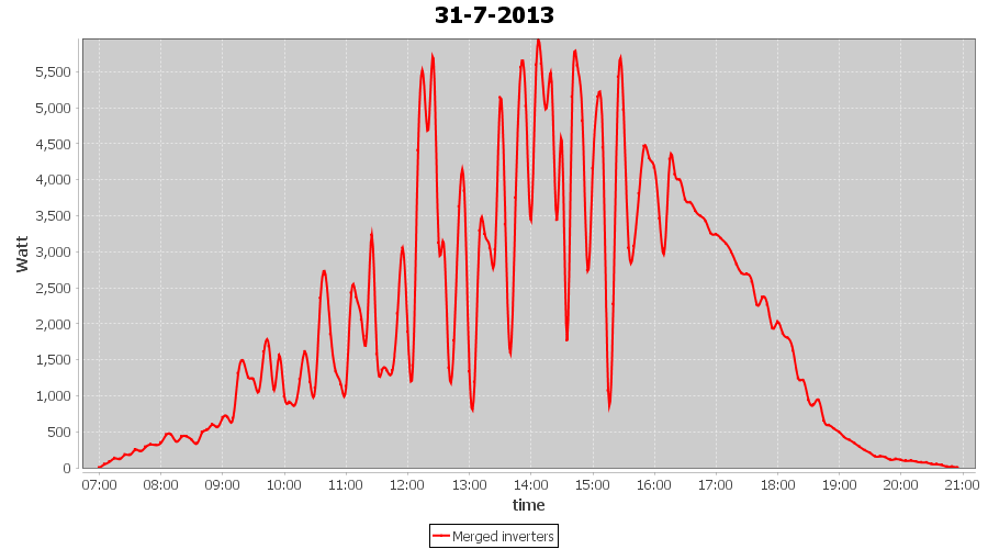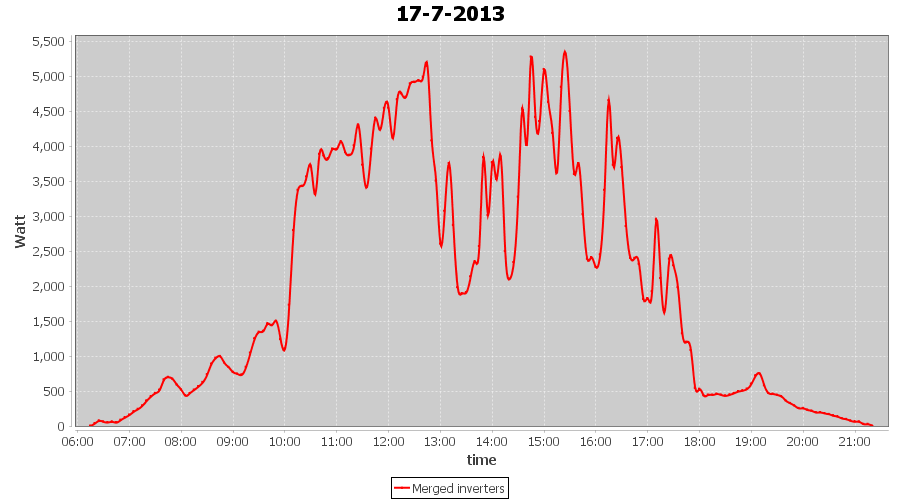 | 17-7-2013 | kWh | Sum | W/Wp | 30.362 | 6000 | 5.1 | 14.042 | € 10.74 | 3.3 |