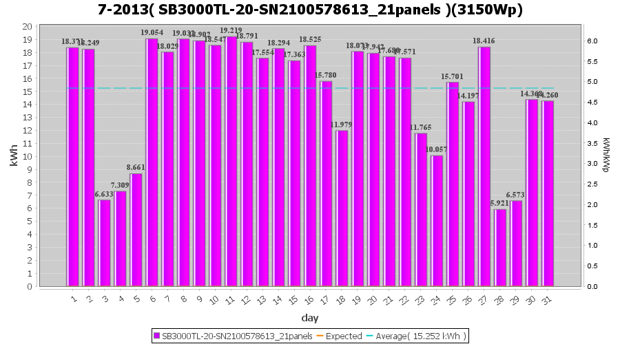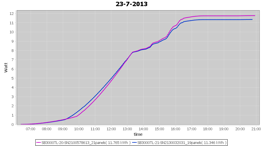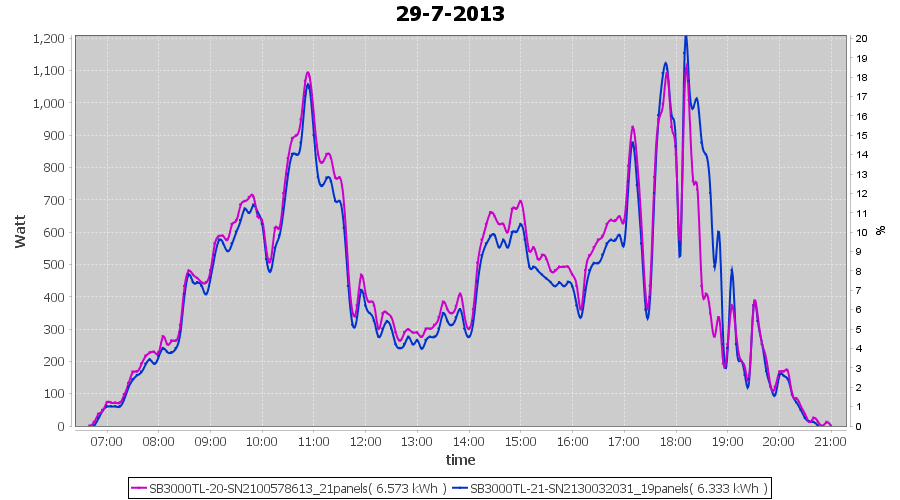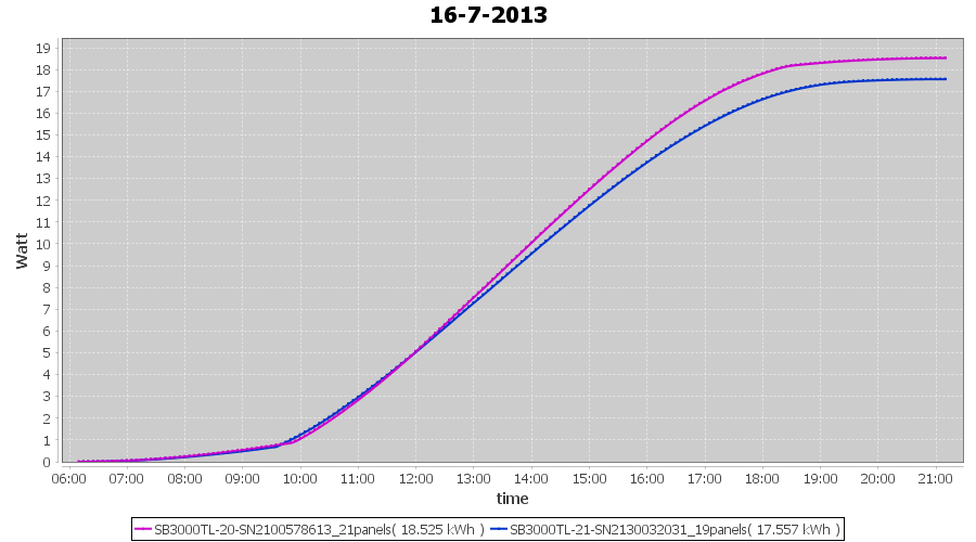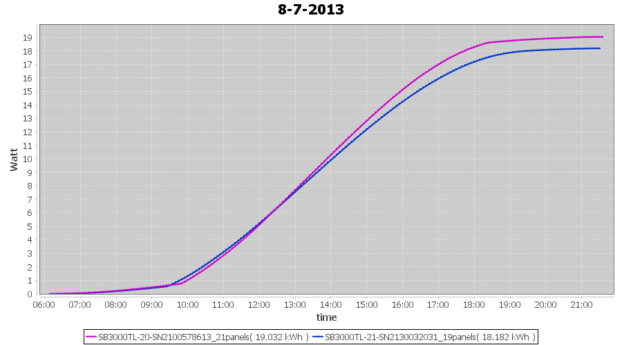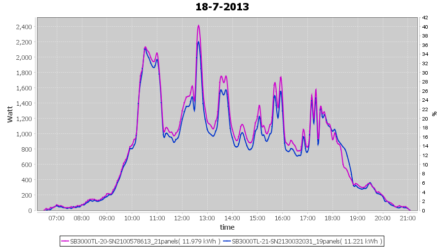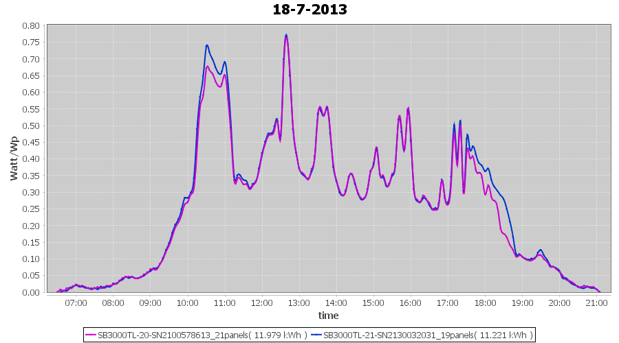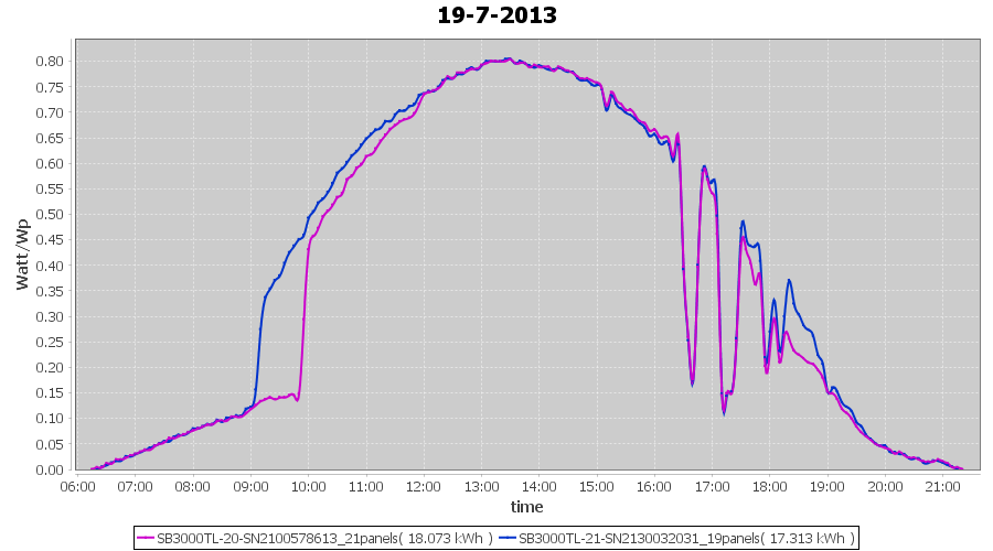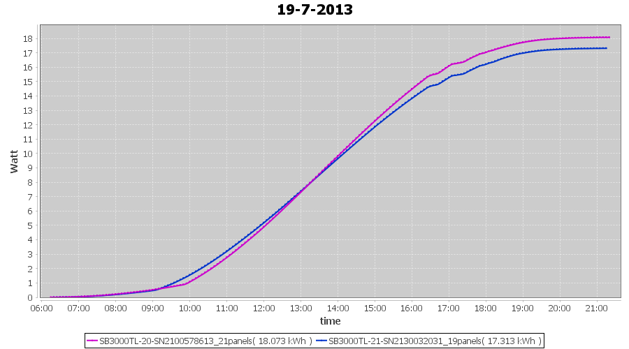 | 18-7-2013 | kWh | Sum | W/Wp | 23.200 | 6000 | 3.9 | 10.730 | € 8.21 | 2.5 |