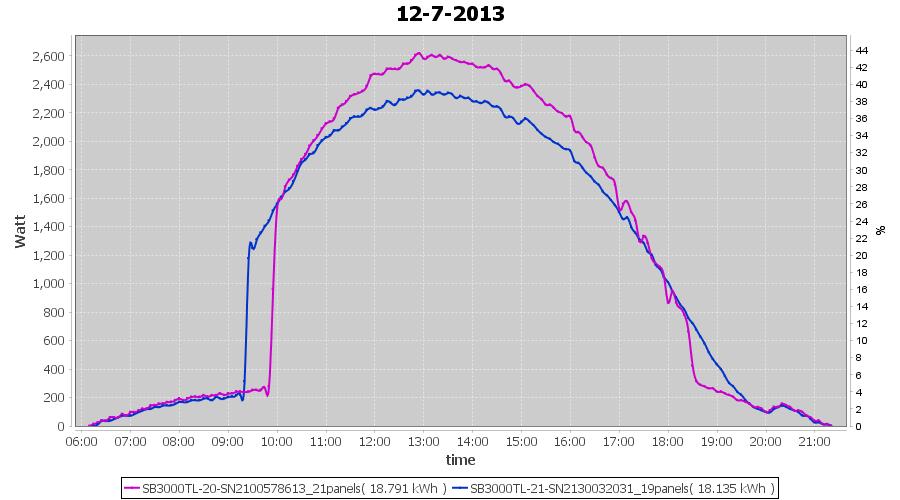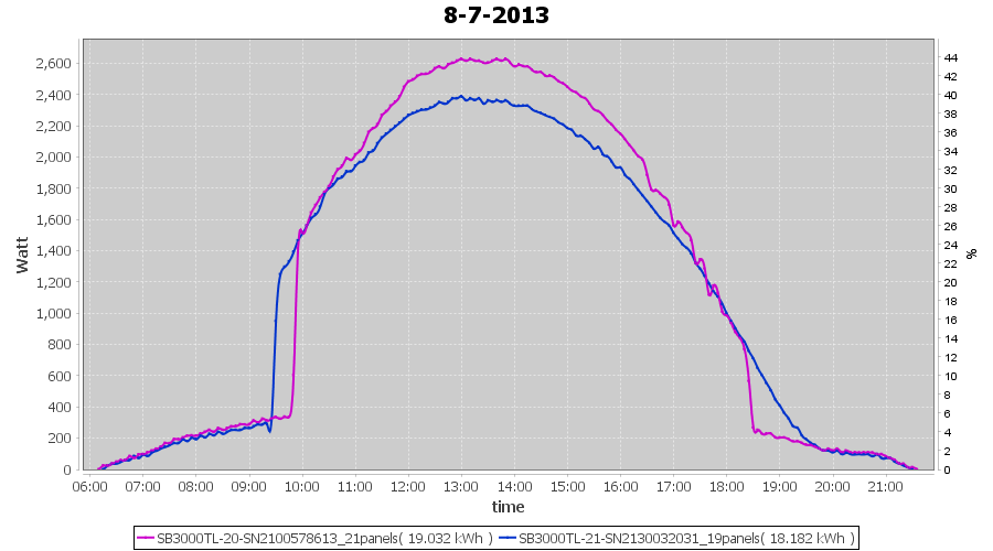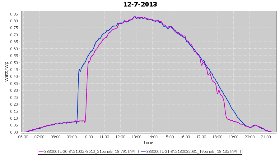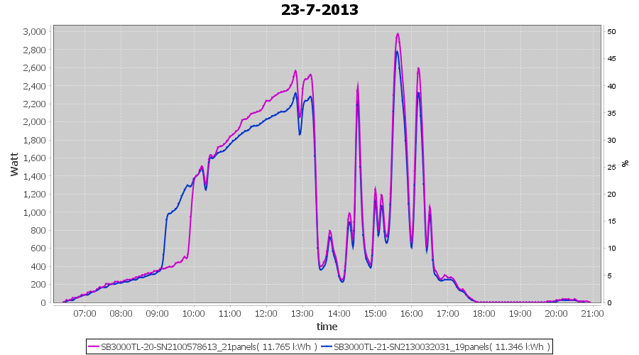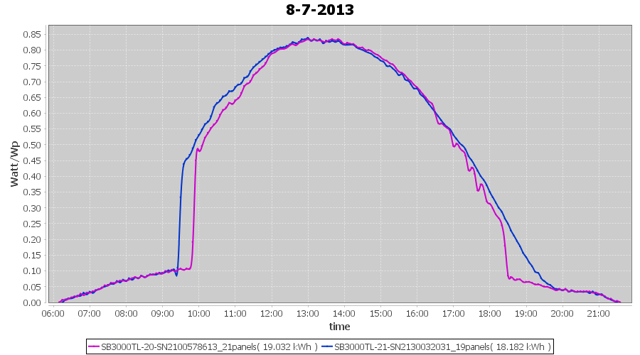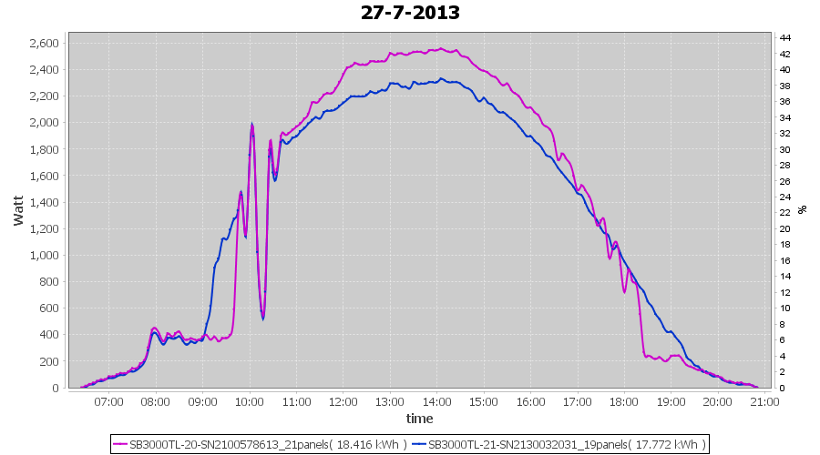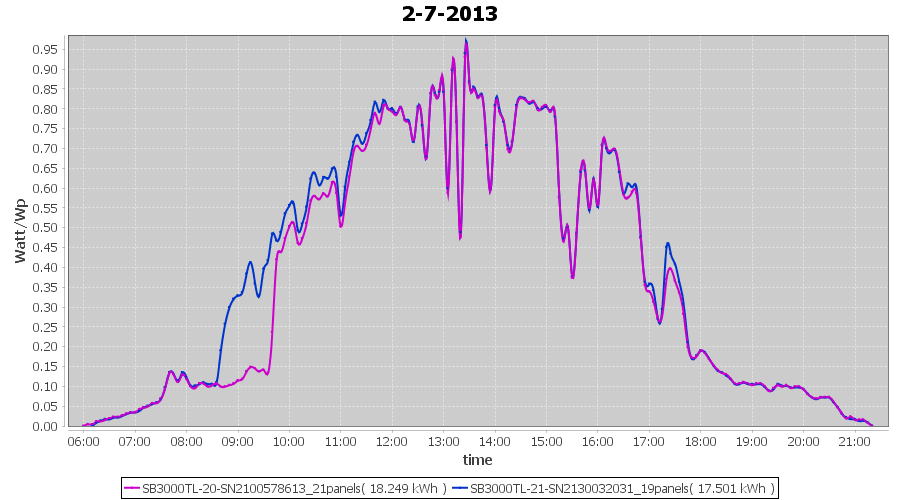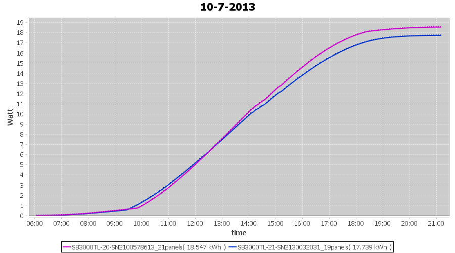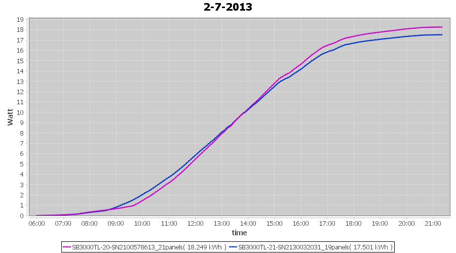 | 18-7-2013 | kWh | Sum | W/Wp | 23.200 | 6000 | 3.9 | 10.730 | € 8.21 | 2.5 |