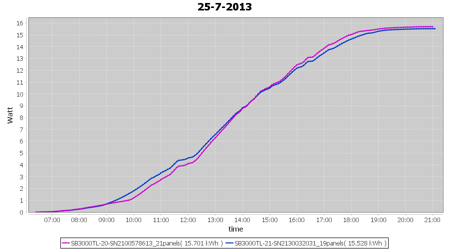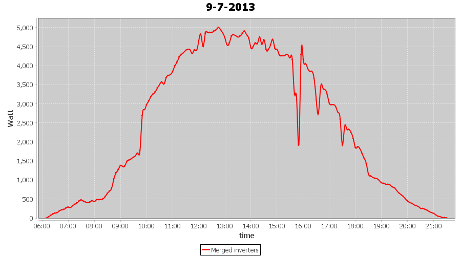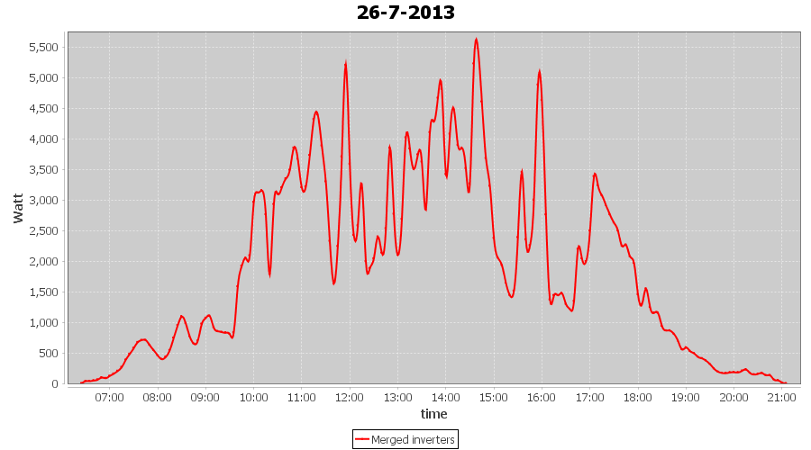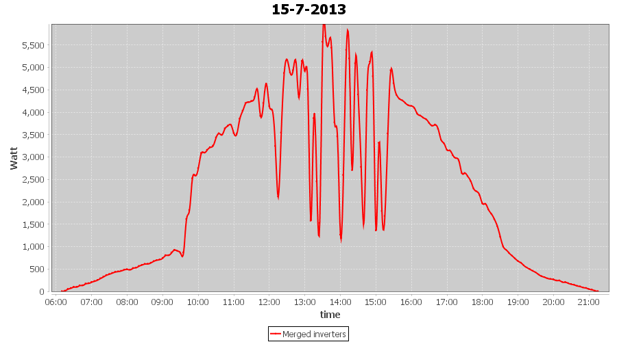 | 15-7-2013 | kWh | Sum | W/Wp | 33.795 | 6000 | 5.6 | 15.630 | € 11.96 | 3.7 |