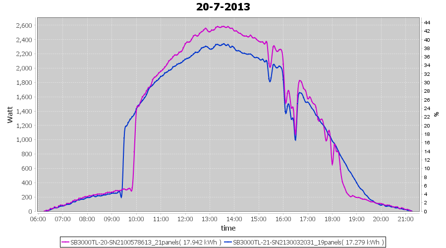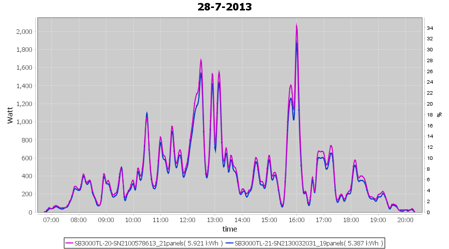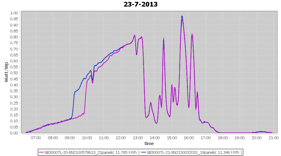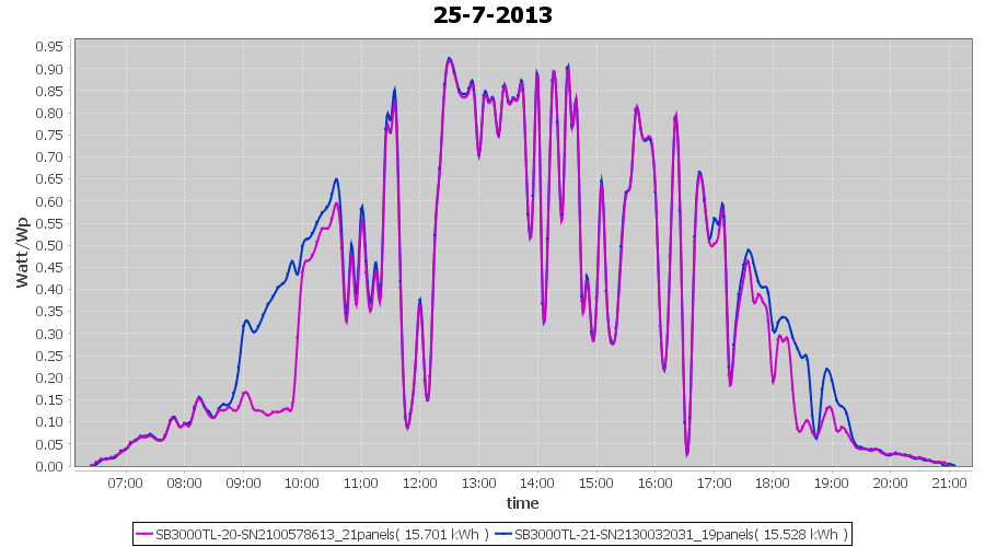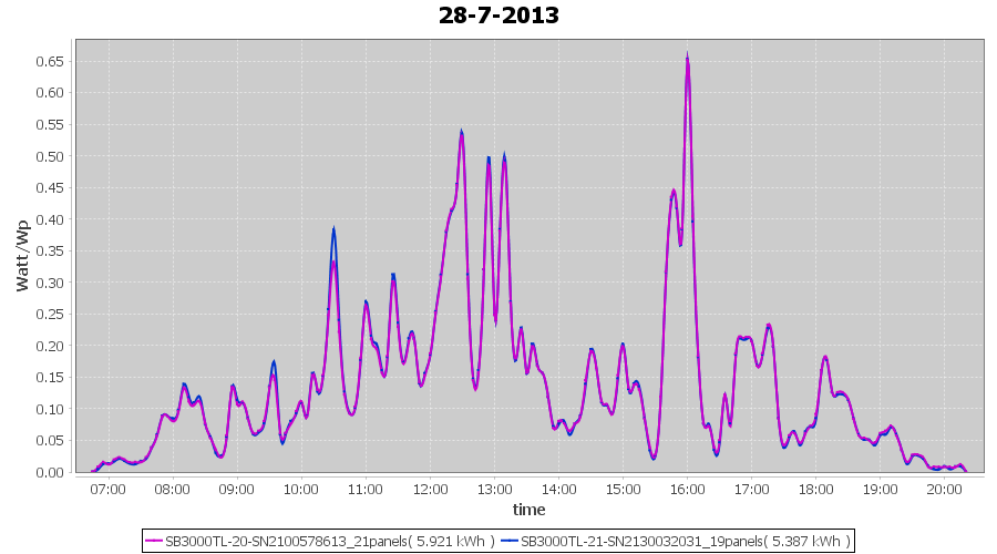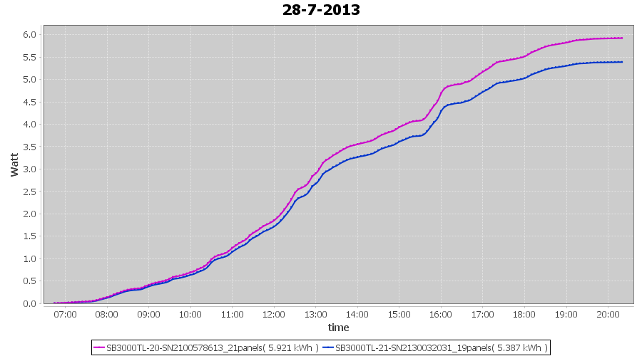 | 20-7-2013 | kWh | Sum | W/Wp | 35.221 | 6000 | 5.9 | 16.290 | € 12.46 | 3.8 |
