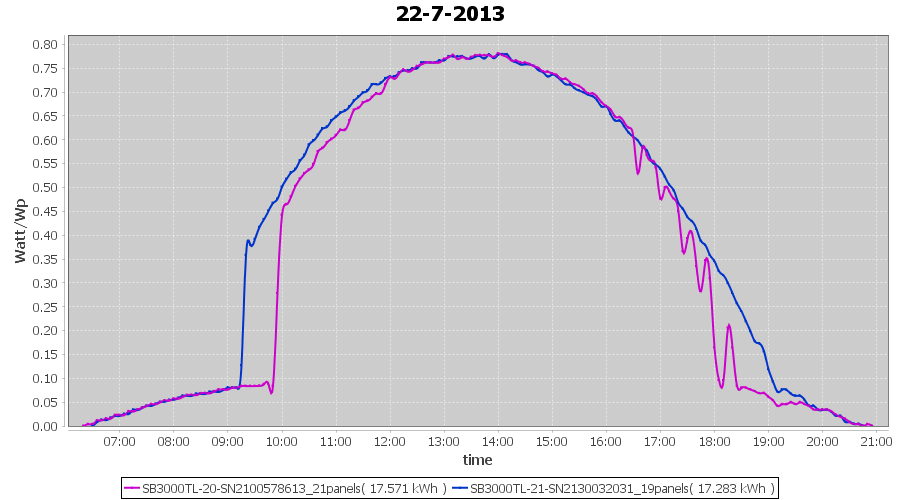 | 22-7-2013 | kWh | Sum | W/Wp | 34.854 | 6000 | 5.8 | 16.120 | € 12.33 | 3.8 |