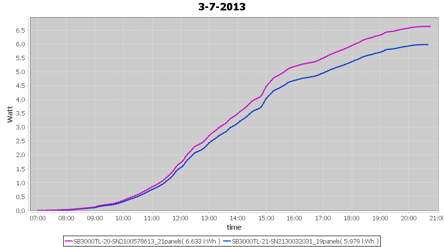 | 3-7-2013 | kWh | Sum | W/Wp | 12.612 | 6000 | 2.1 | 5.833 | € 4.46 | 1.4 |