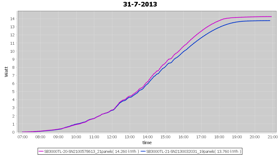 | 14-7-2013 | kWh | Sum | W/Wp | 35.697 | 6000 | 5.9 | 16.510 | € 12.63 | 3.9 |