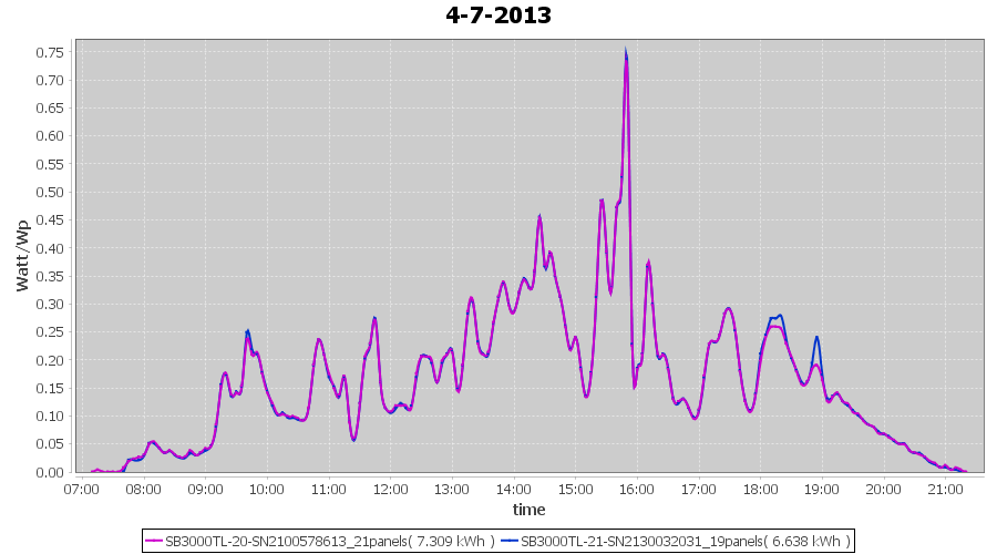 | 7-7-2013 | kWh | Sum | W/Wp | 35.597 | 6000 | 5.9 | 16.464 | € 12.59 | 3.8 |