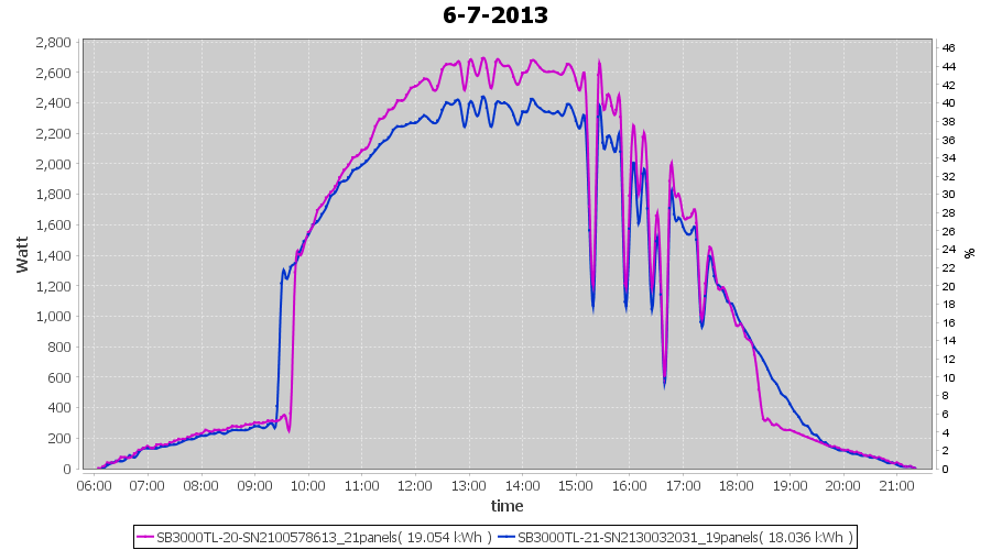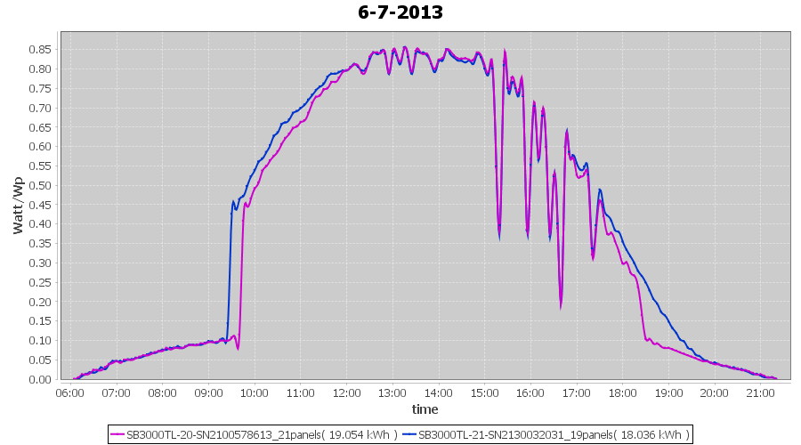 | 6-7-2013 | kWh | Sum | W/Wp | 37.090 | 6000 | 6.2 | 17.154 | € 13.12 | 4.0 |