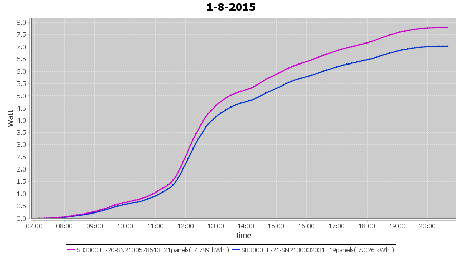 | 8-8-2015 | kWh | Sum | W/Wp | 22.499 | 6000 | 3.7 | 10.406 | € 8.00 | 2.9 |