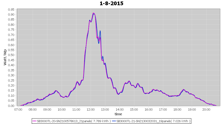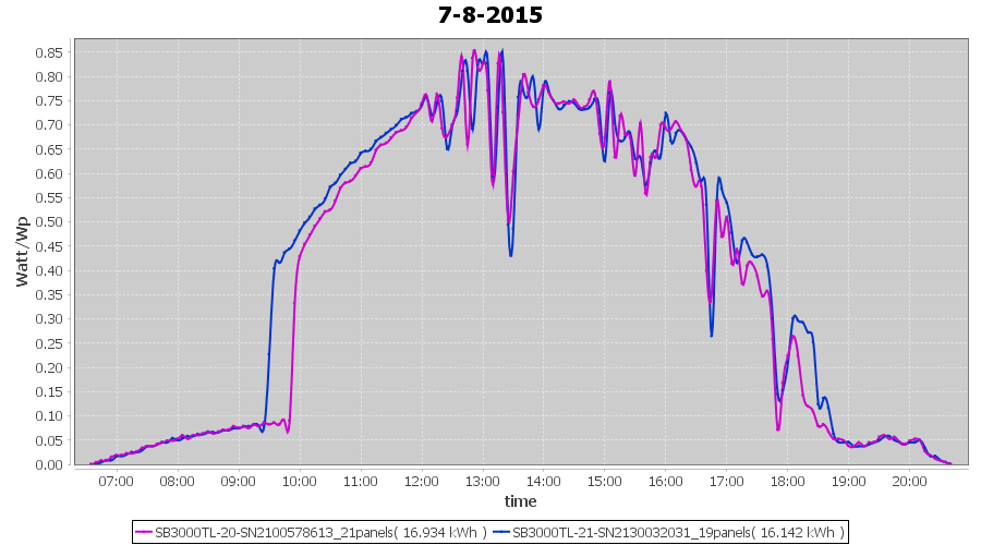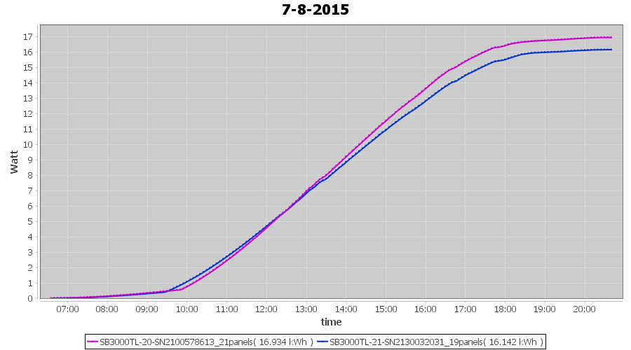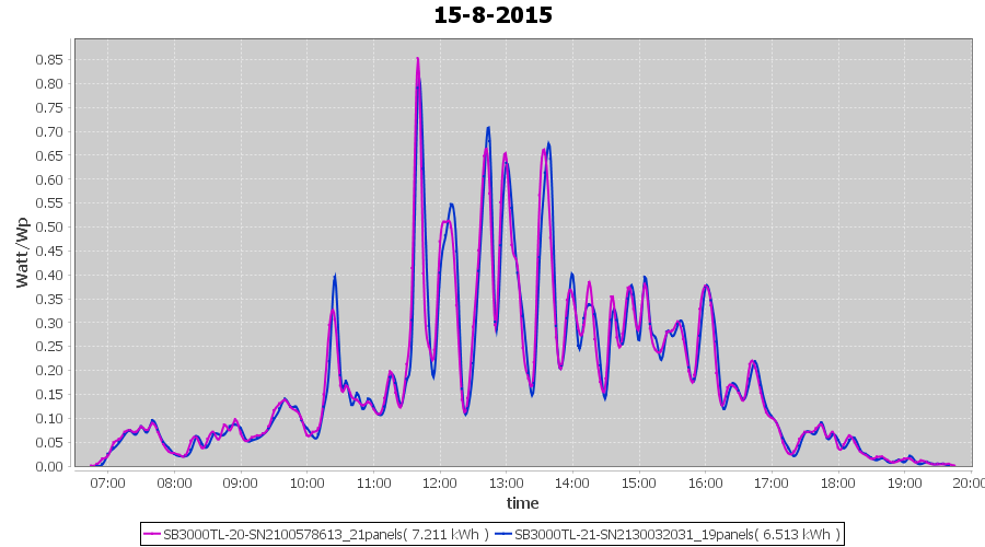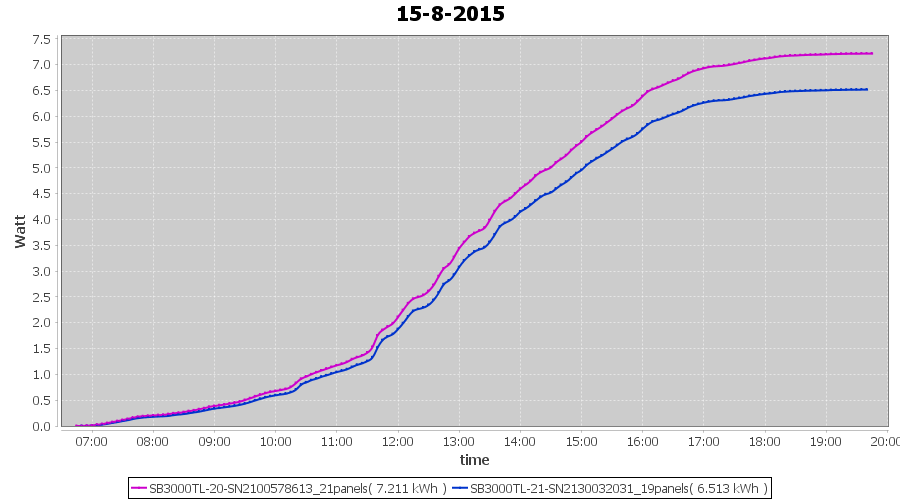 | 7-8-2015 | kWh | Sum | W/Wp | 33.076 | 6000 | 5.5 | 15.298 | € 11.76 | 4.2 |
