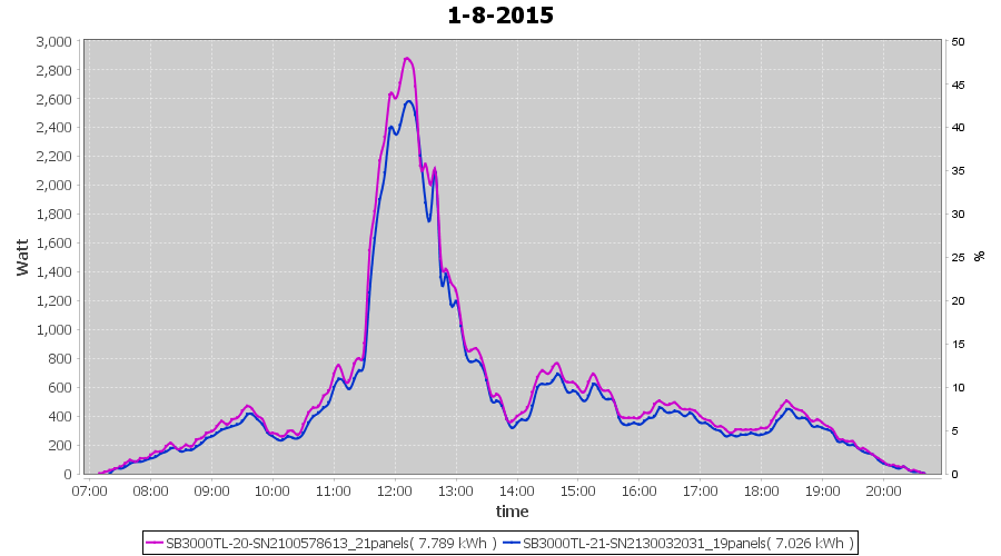 | 1-8-2015 | kWh | Sum | W/Wp | 14.815 | 6000 | 2.5 | 6.852 | € 5.27 | 1.9 |