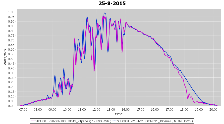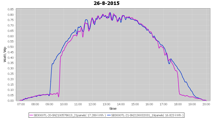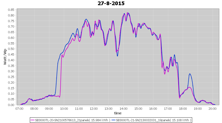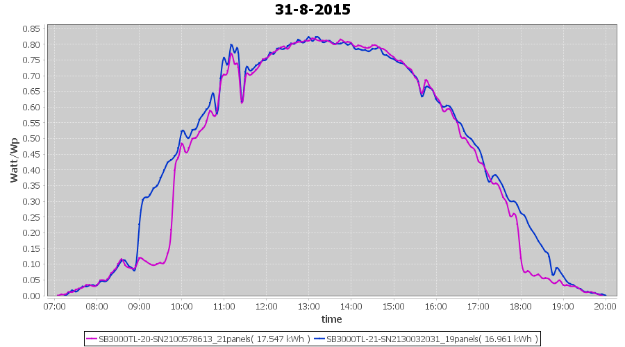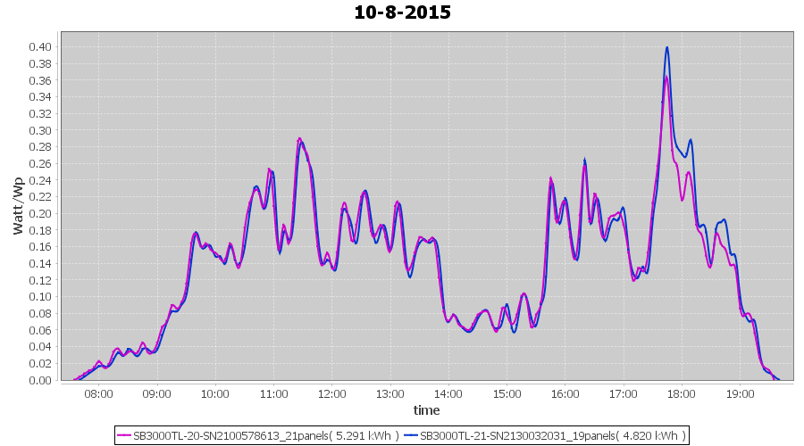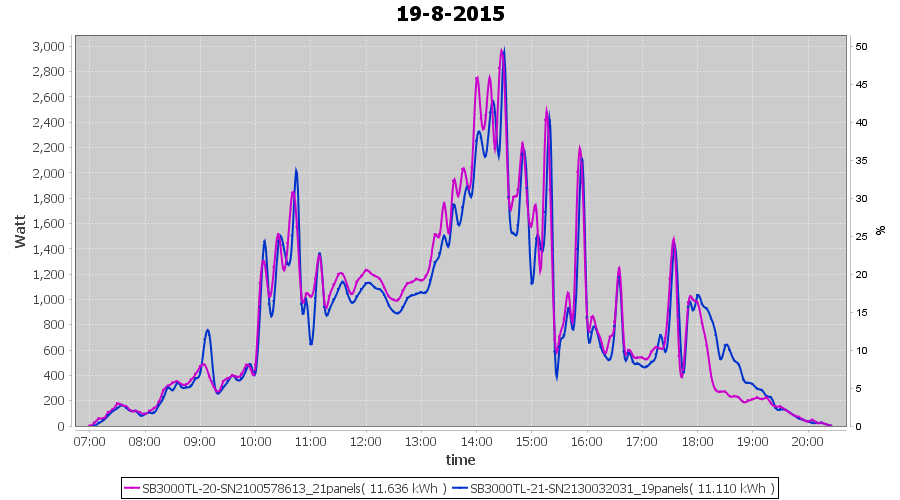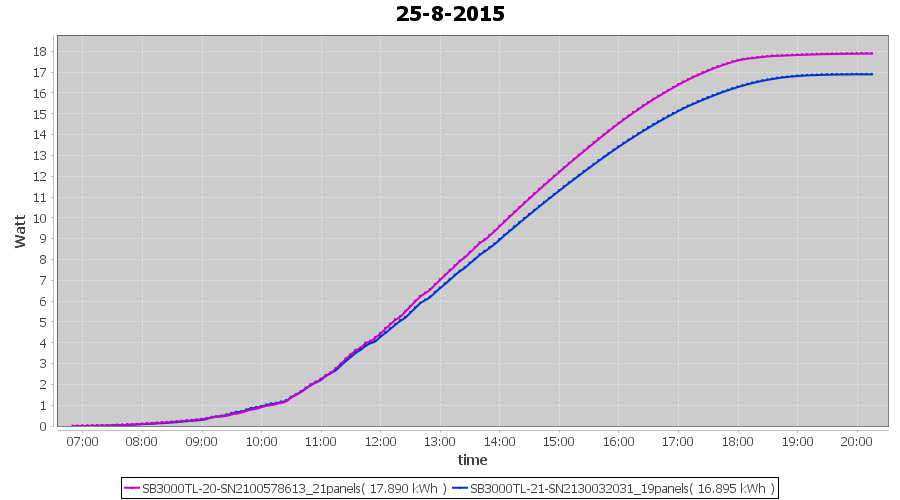 | 19-8-2015 | kWh | Sum | W/Wp | 22.746 | 6000 | 3.8 | 10.520 | € 8.08 | 2.9 |