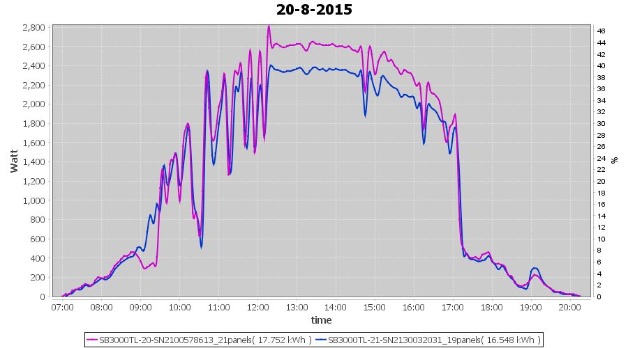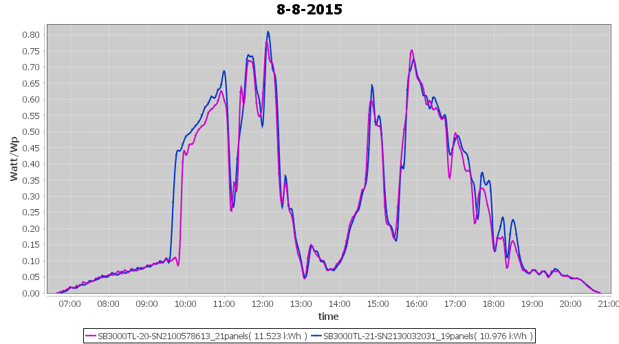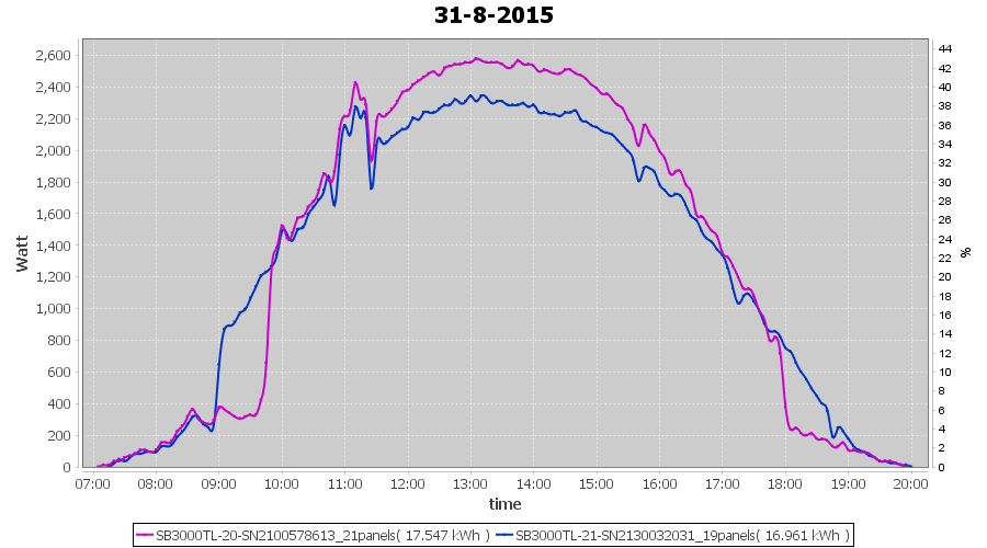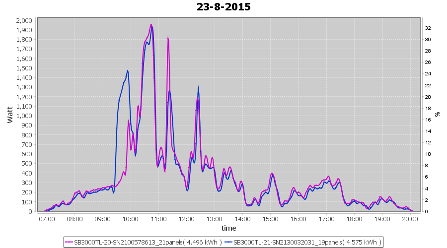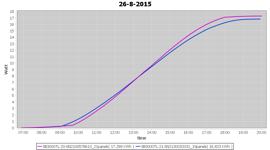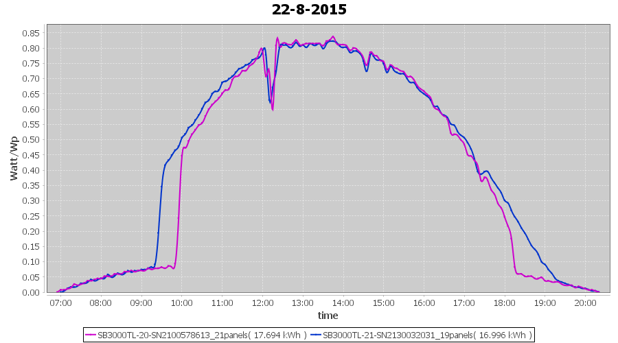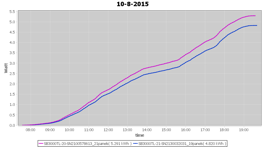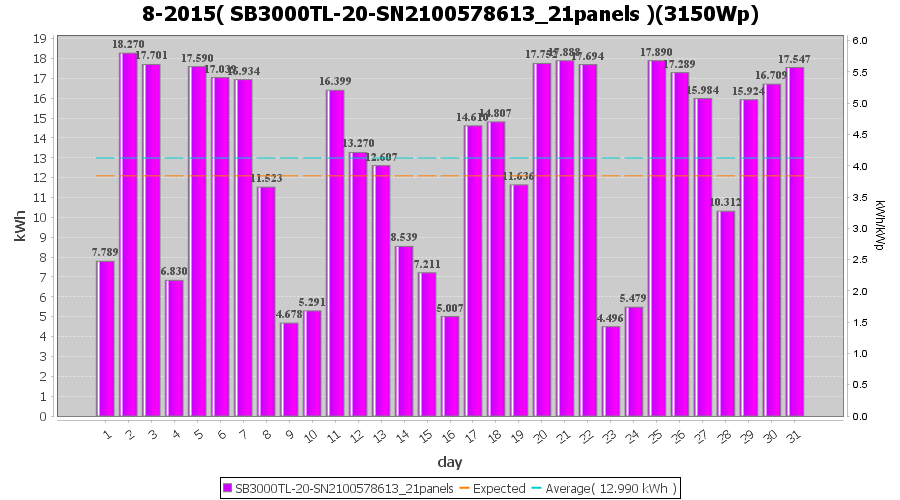 | 19-8-2015 | kWh | Sum | W/Wp | 22.746 | 6000 | 3.8 | 10.520 | € 8.08 | 2.9 |