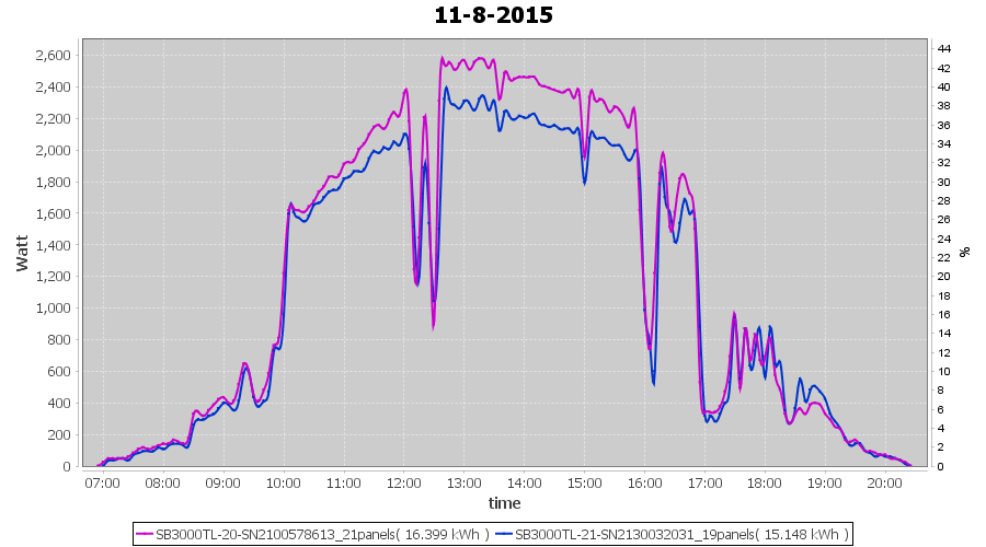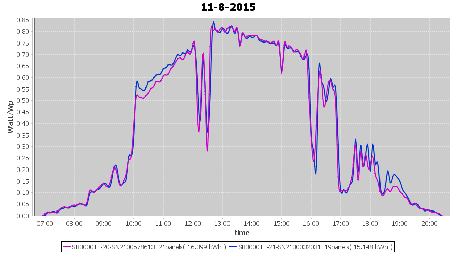 | 11-8-2015 | kWh | Sum | W/Wp | 31.547 | 6000 | 5.3 | 14.590 | € 11.21 | 4.0 |