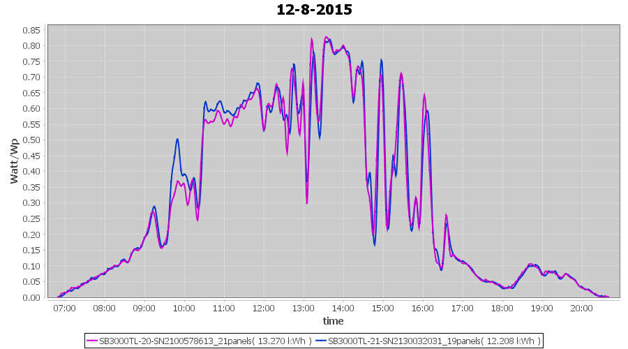 | 12-8-2015 | kWh | Sum | W/Wp | 25.478 | 6000 | 4.2 | 11.784 | € 9.06 | 3.2 |