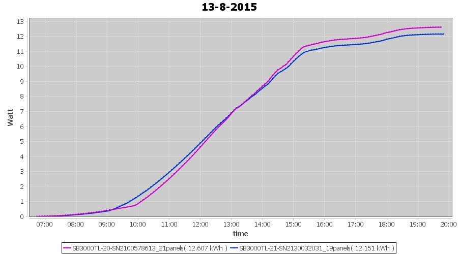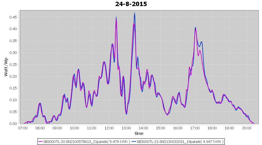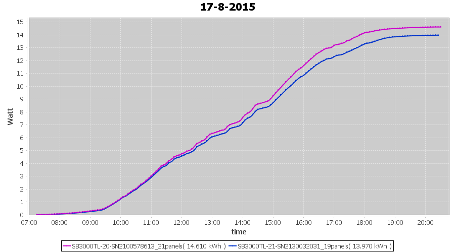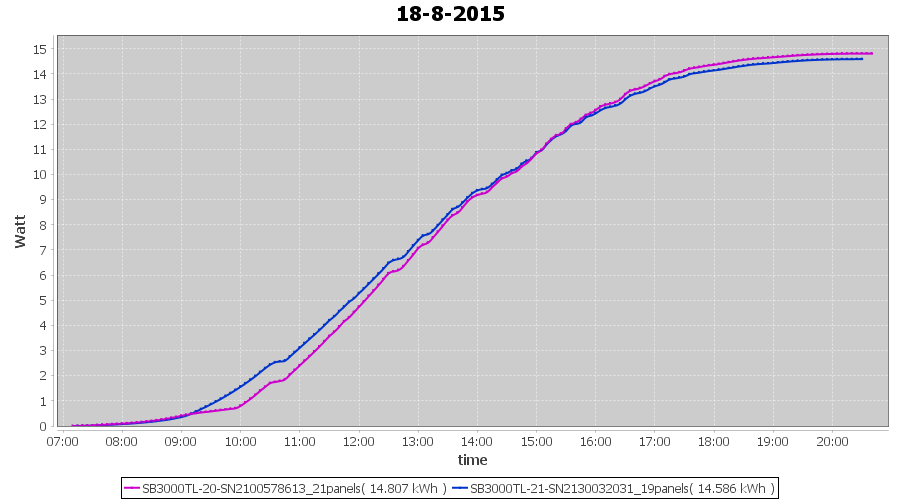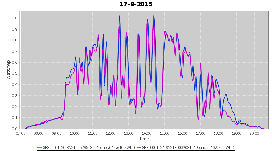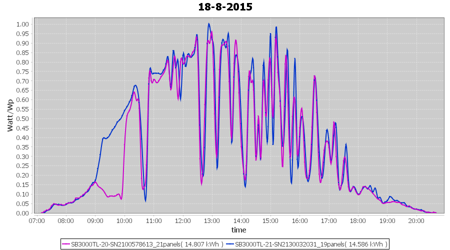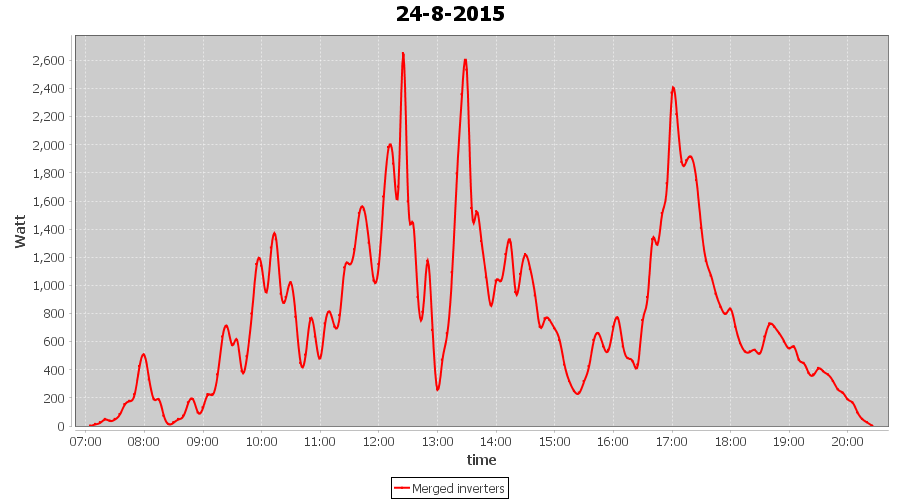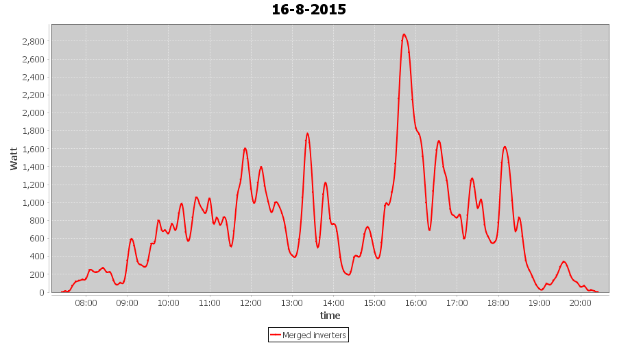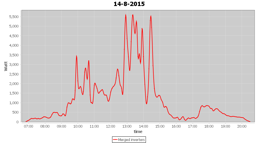 | 13-8-2015 | kWh | Sum | W/Wp | 24.758 | 6000 | 4.1 | 11.451 | € 8.80 | 3.1 |