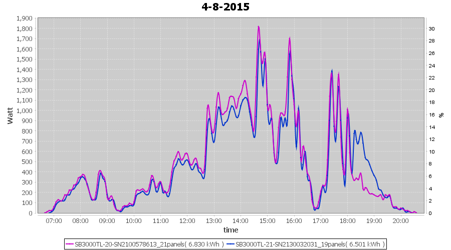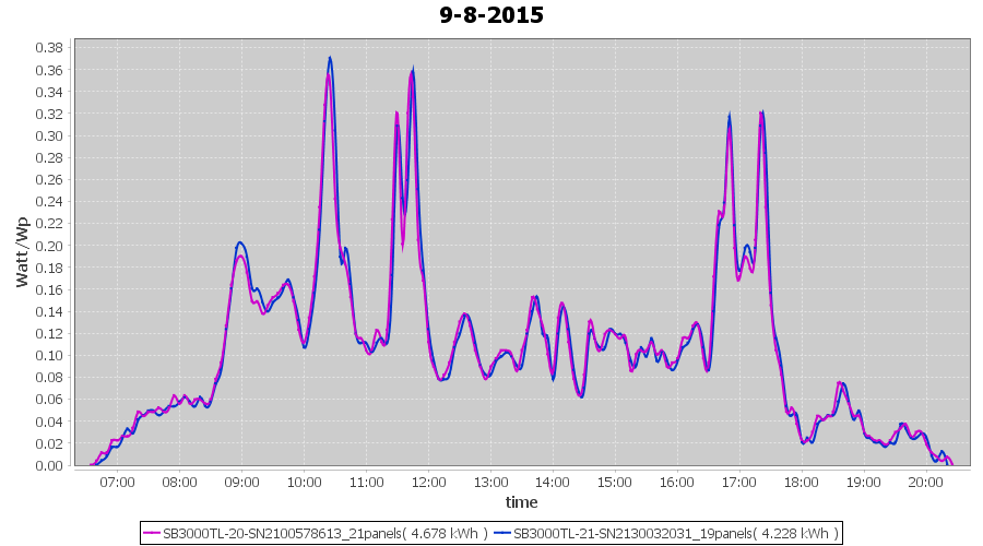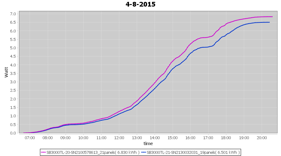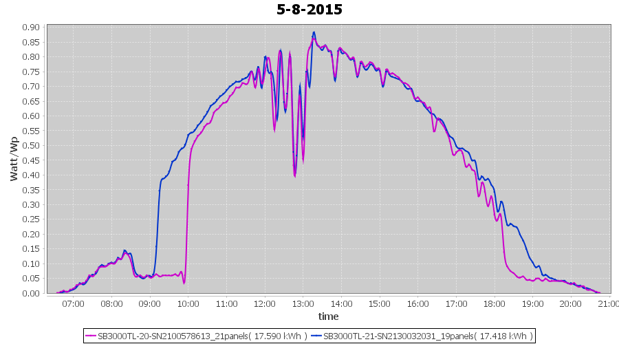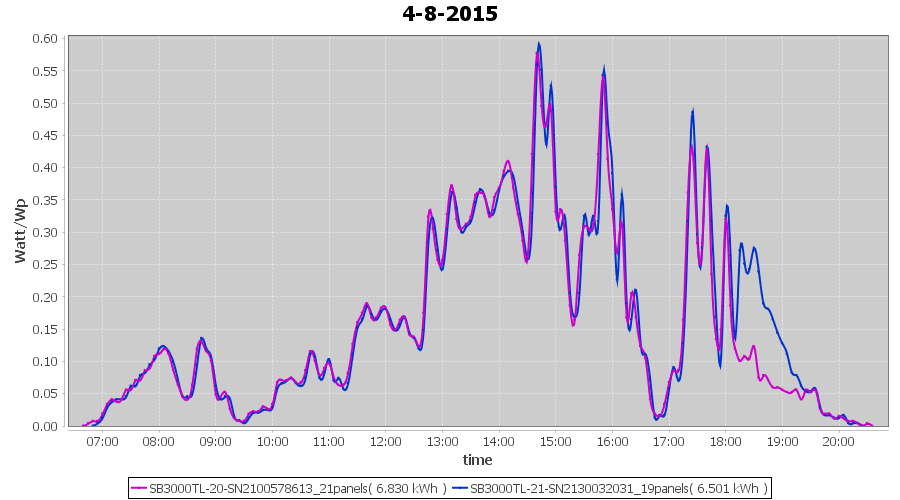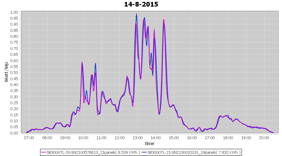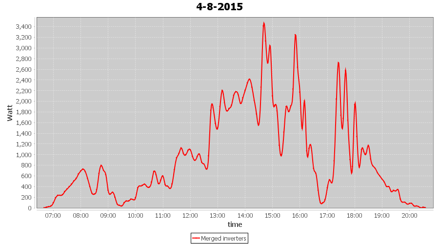 | 4-8-2015 | kWh | Sum | W/Wp | 13.331 | 6000 | 2.2 | 6.166 | € 4.74 | 1.7 |