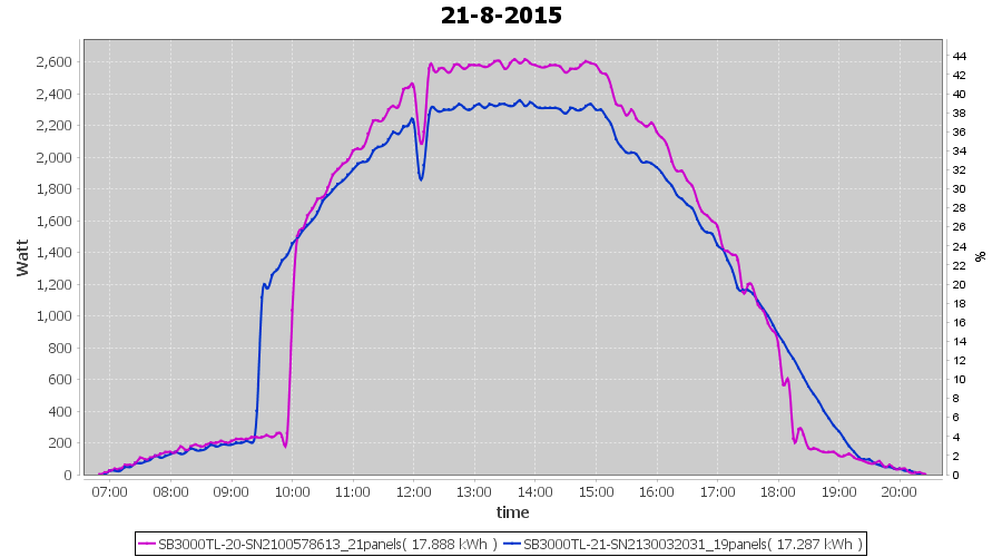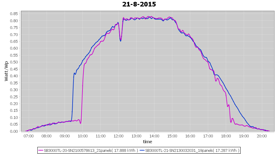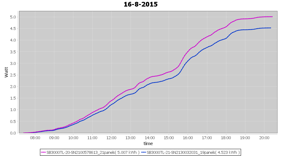 | 21-8-2015 | kWh | Sum | W/Wp | 35.175 | 6000 | 5.9 | 16.268 | € 12.50 | 4.5 |