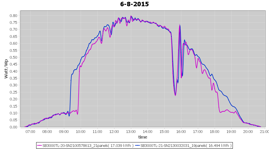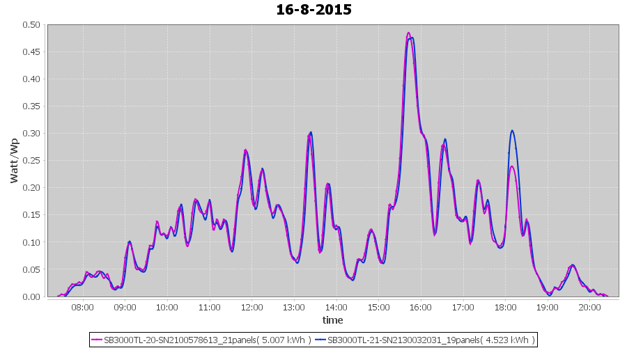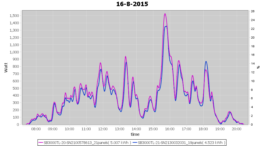 | 16-8-2015 | kWh | Sum | W/Wp | 9.530 | 6000 | 1.6 | 4.408 | € 3.39 | 1.2 |