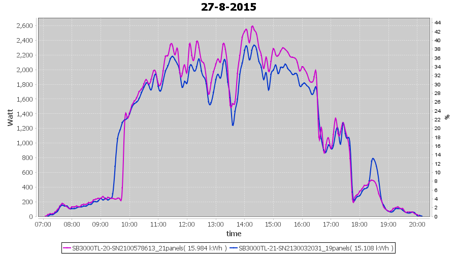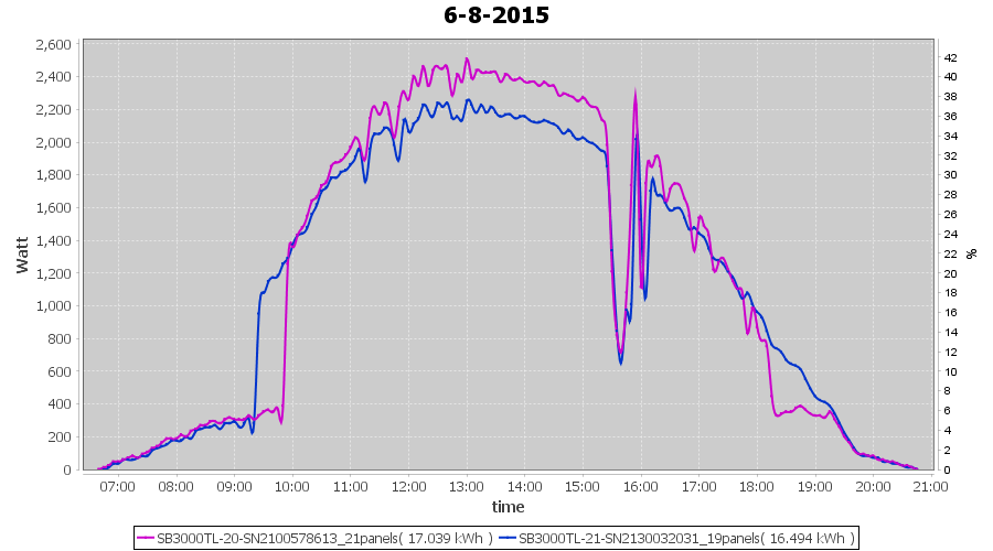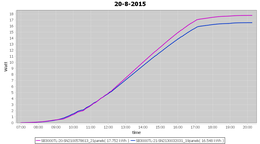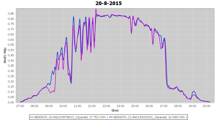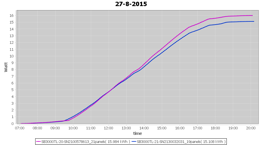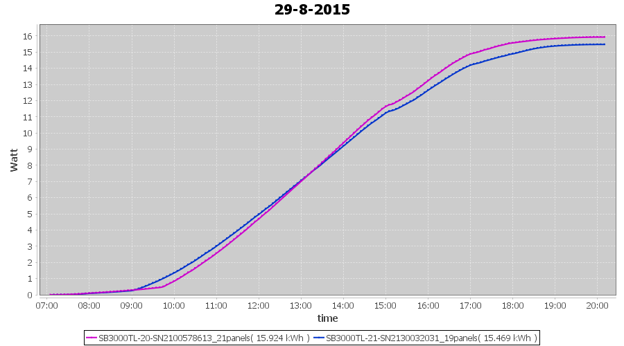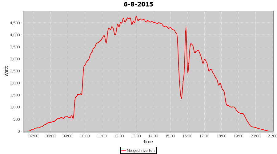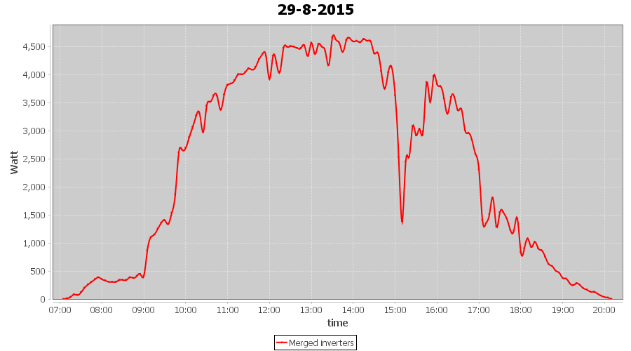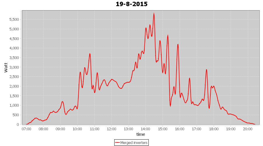 | 20-8-2015 | kWh | Sum | W/Wp | 34.300 | 6000 | 5.7 | 15.864 | € 12.19 | 4.4 |