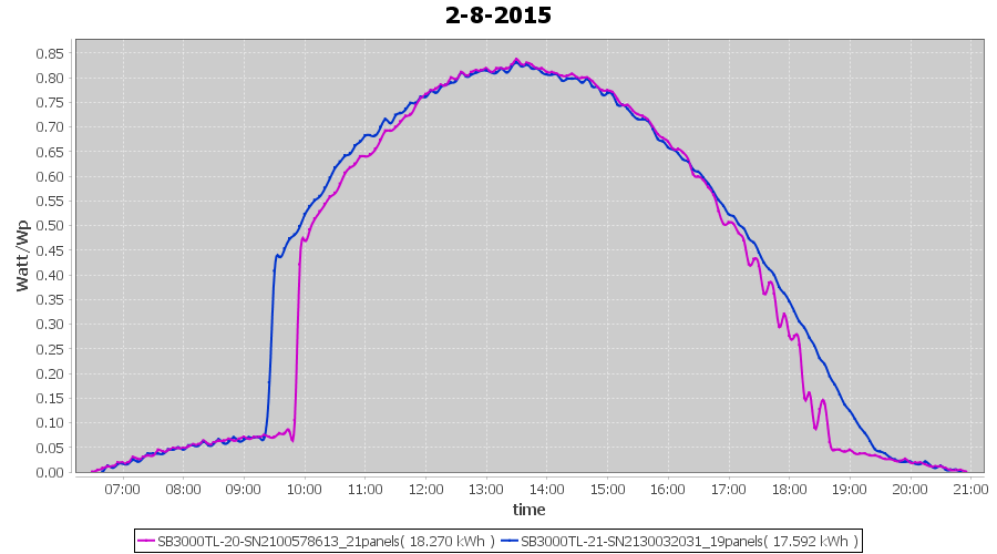 | 2-8-2015 | kWh | Sum | W/Wp | 35.862 | 6000 | 6.0 | 16.586 | € 12.75 | 4.6 |