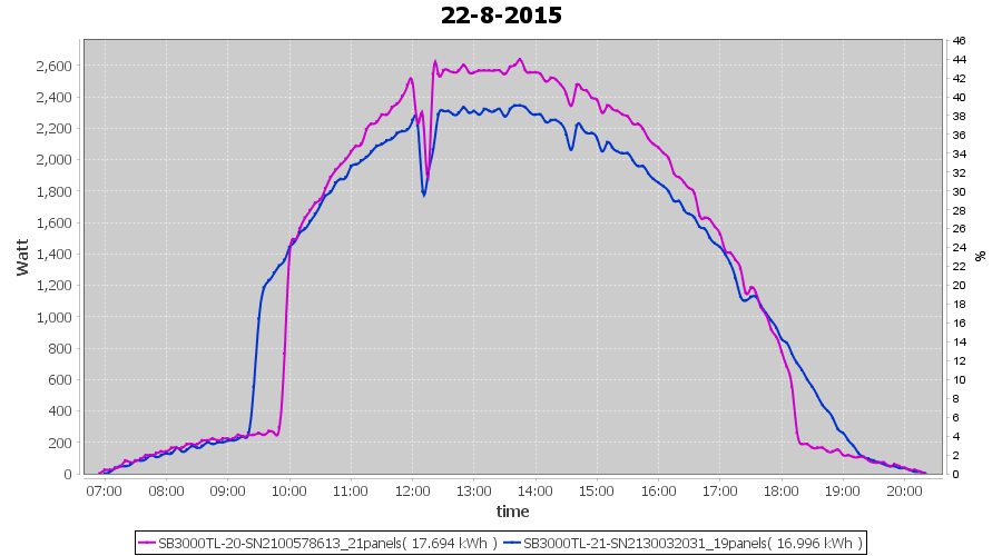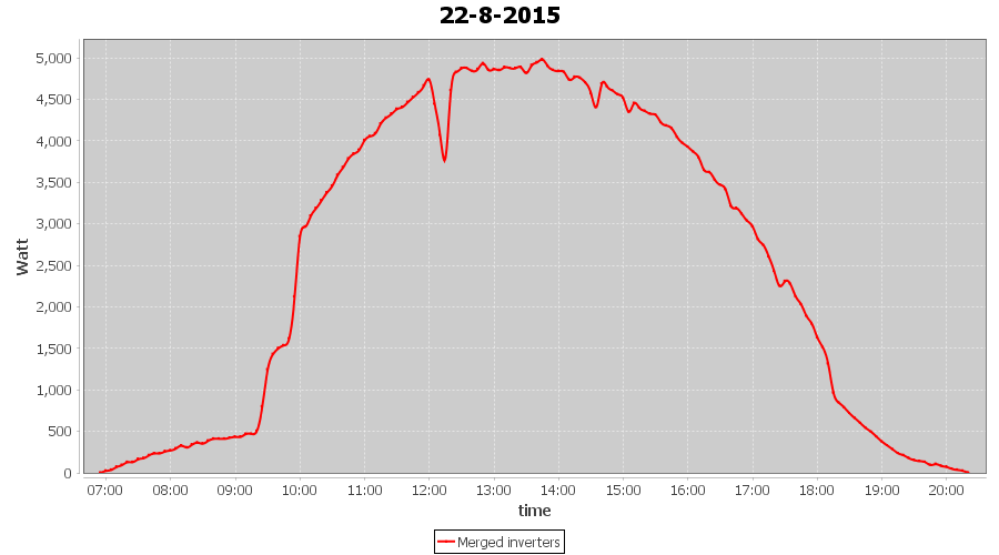 | 22-8-2015 | kWh | Sum | W/Wp | 34.690 | 6000 | 5.8 | 16.044 | € 12.33 | 4.4 |