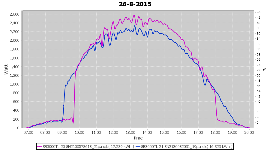 | 26-8-2015 | kWh | Sum | W/Wp | 34.112 | 6000 | 5.7 | 15.777 | € 12.12 | 4.3 |