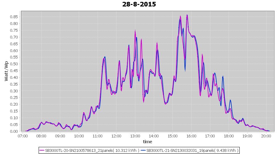 | 28-8-2015 | kWh | Sum | W/Wp | 19.750 | 6000 | 3.3 | 9.134 | € 7.02 | 2.5 |