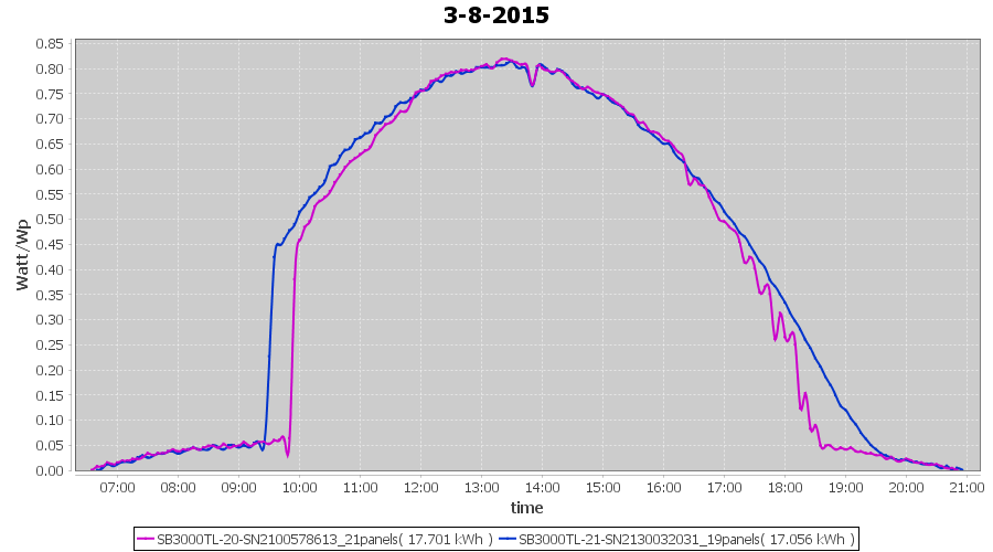 | 3-8-2015 | kWh | Sum | W/Wp | 34.757 | 6000 | 5.8 | 16.075 | € 12.35 | 4.4 |