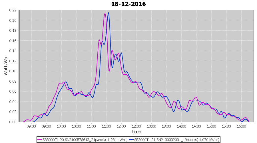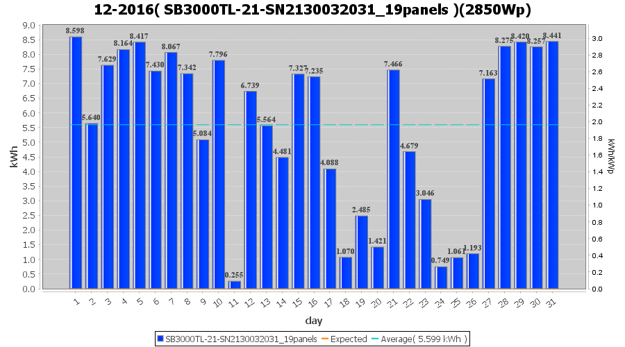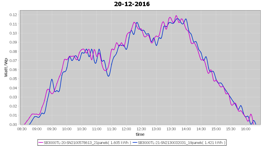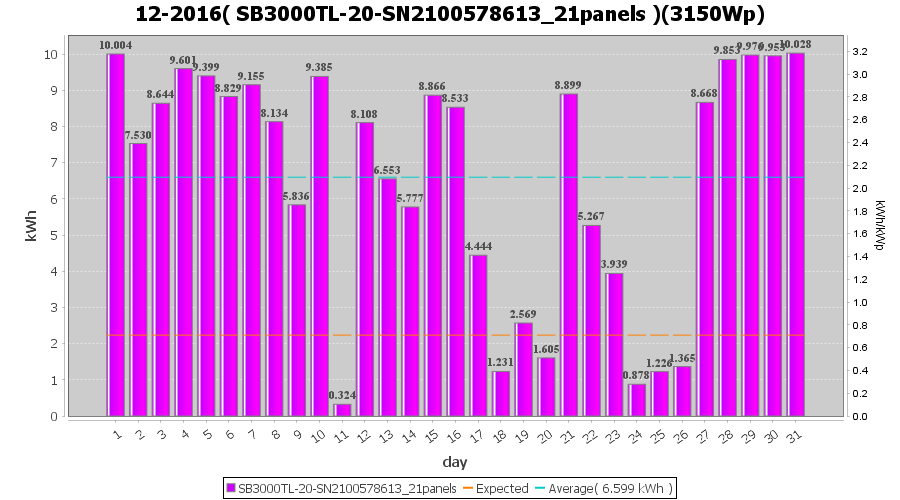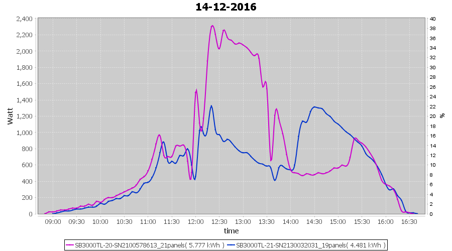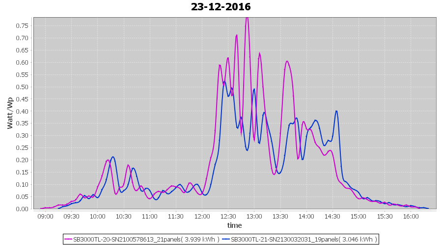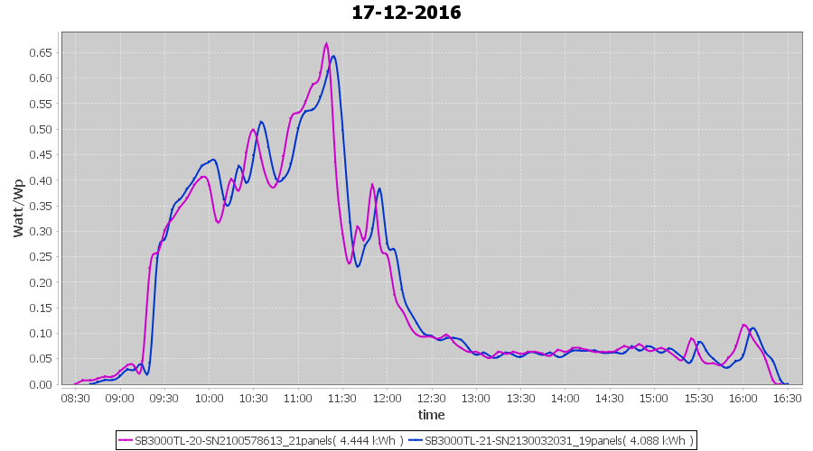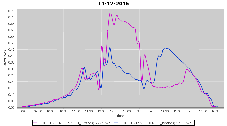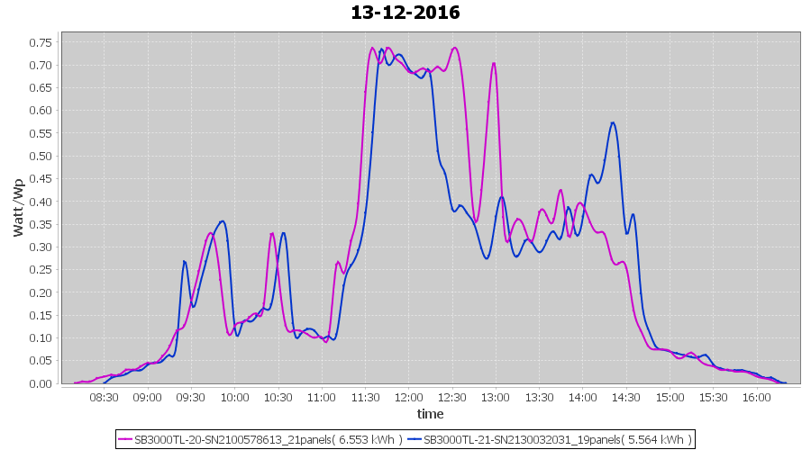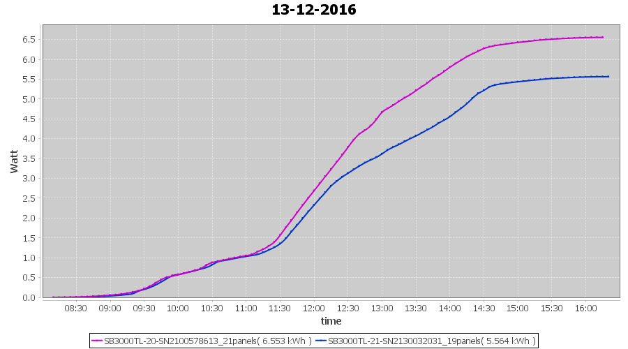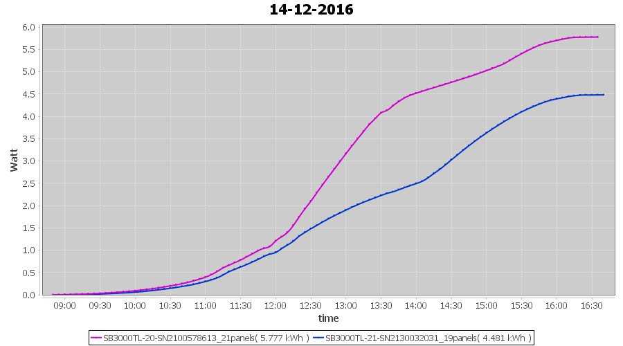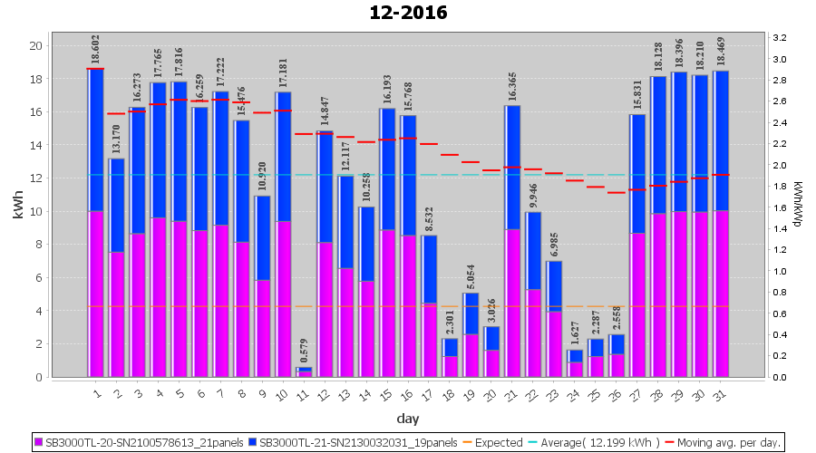 | 13-12-2016 | kWh | Sum | W/Wp | 12.117 | 6000 | 2.0 | 5.604 | € 4.31 | 3.2 |